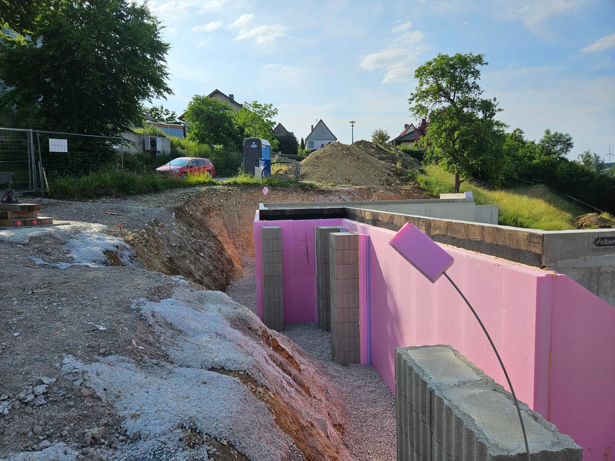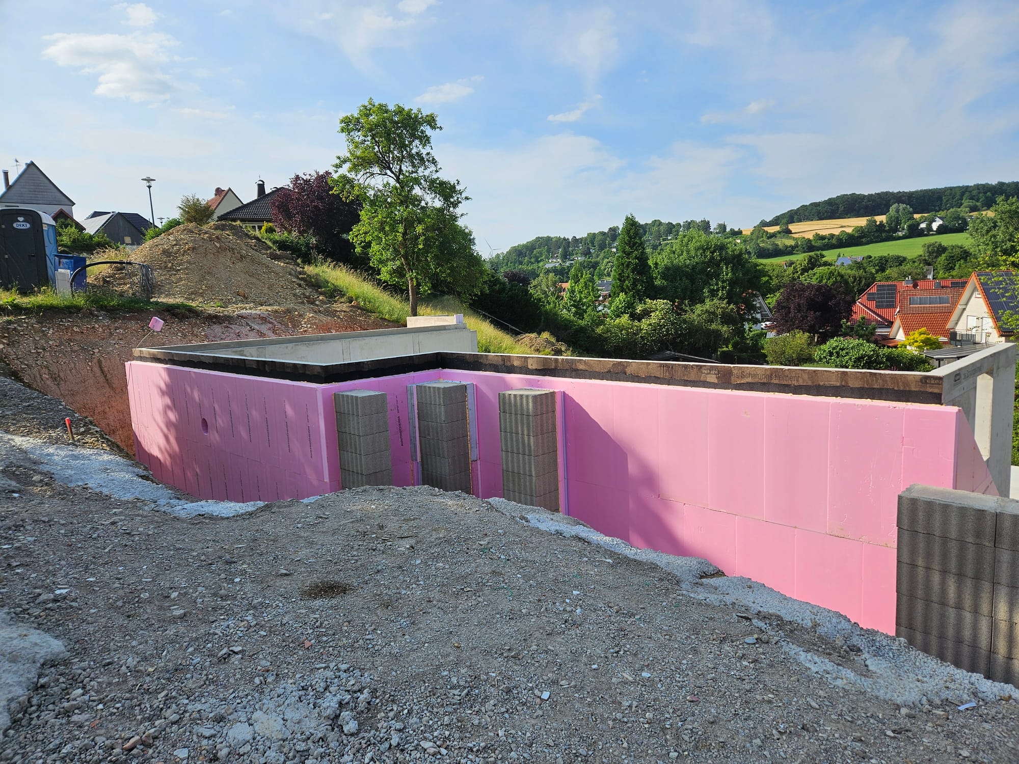 - Der Unterbau für die Pfeiler im Eingangsbereich wurde erstellt
