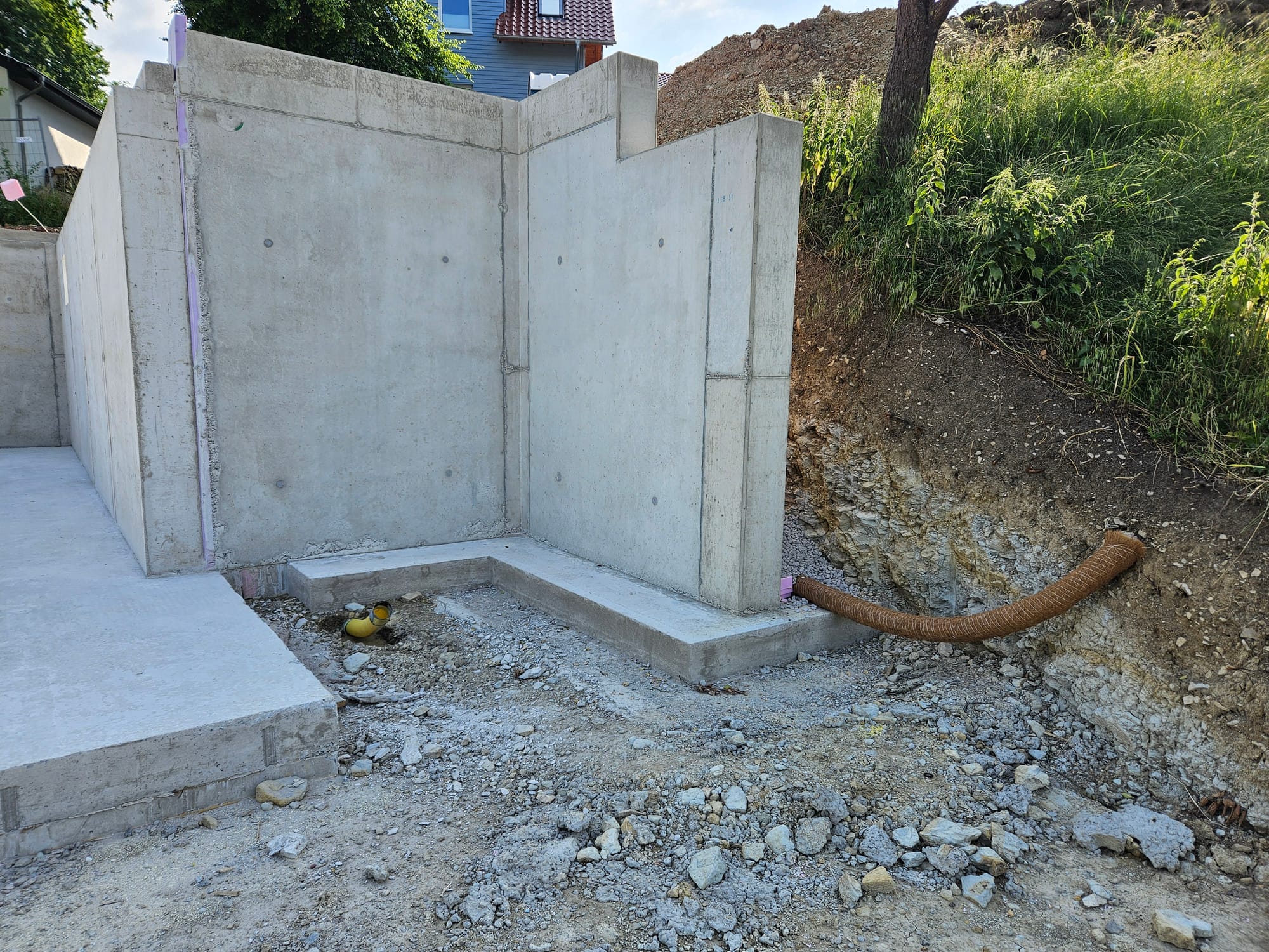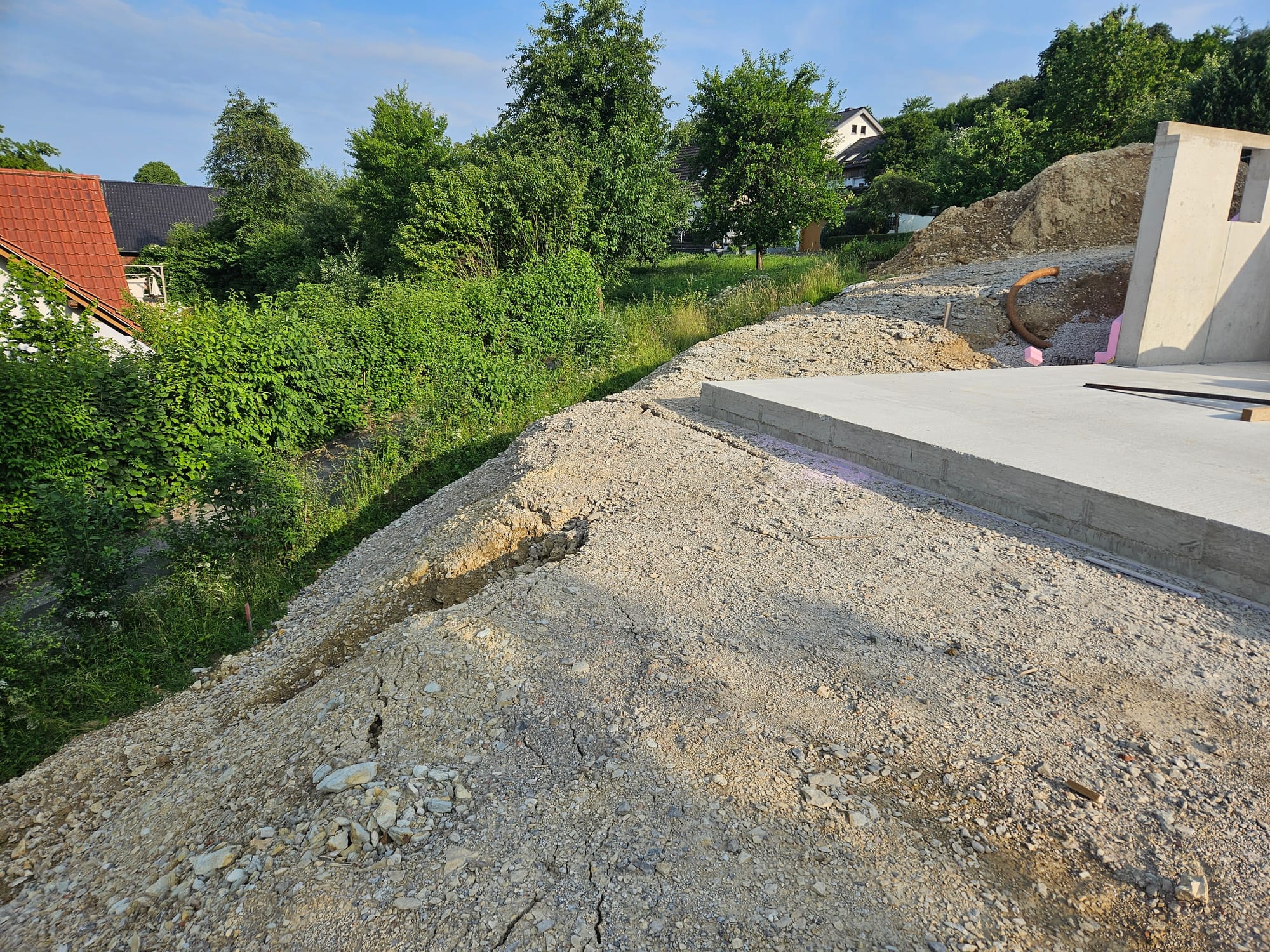 - Es gab einen kleinen Hang Absturz an der Hausecke (starker Regen)