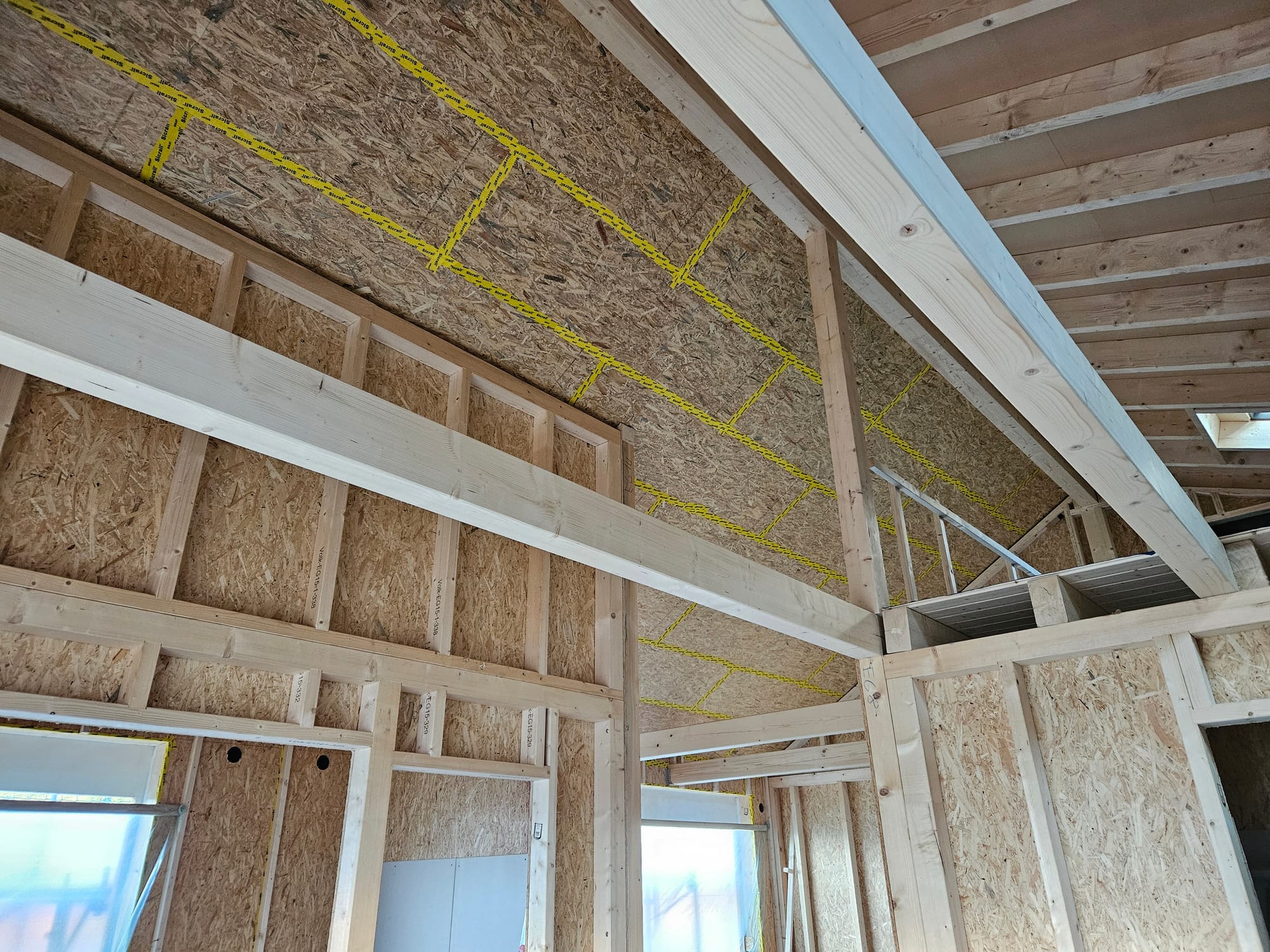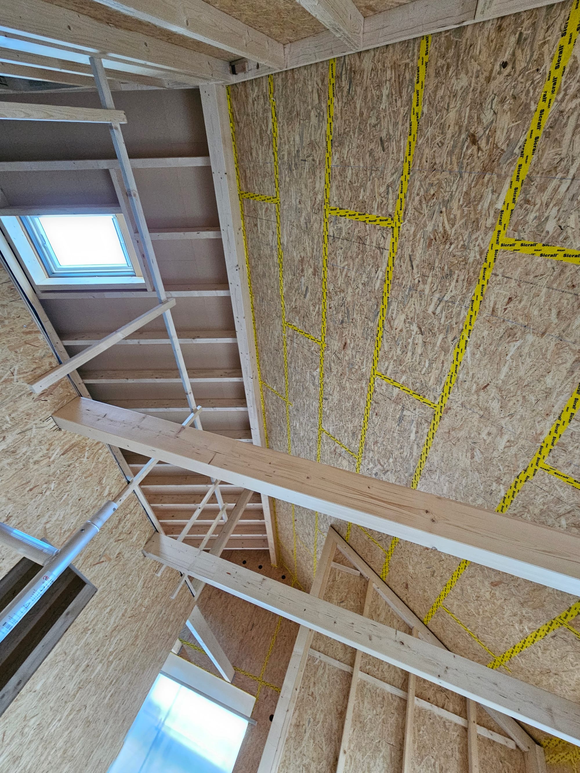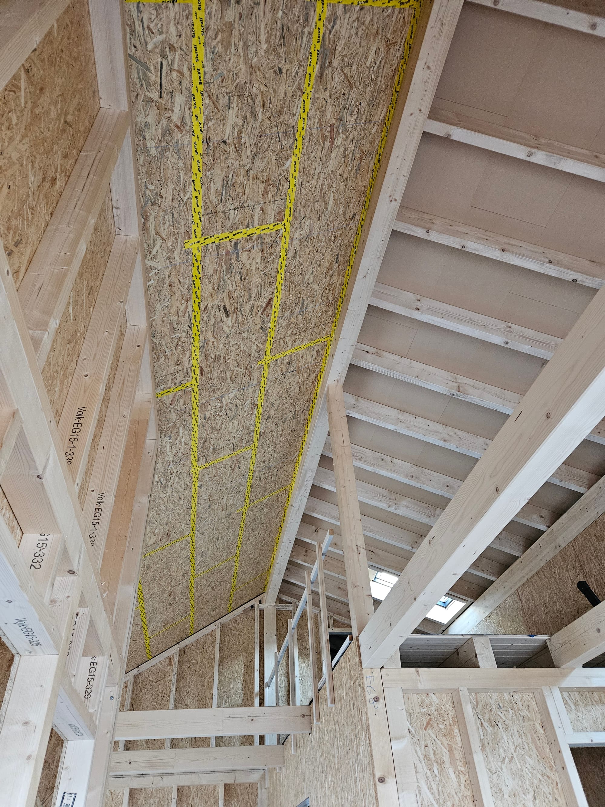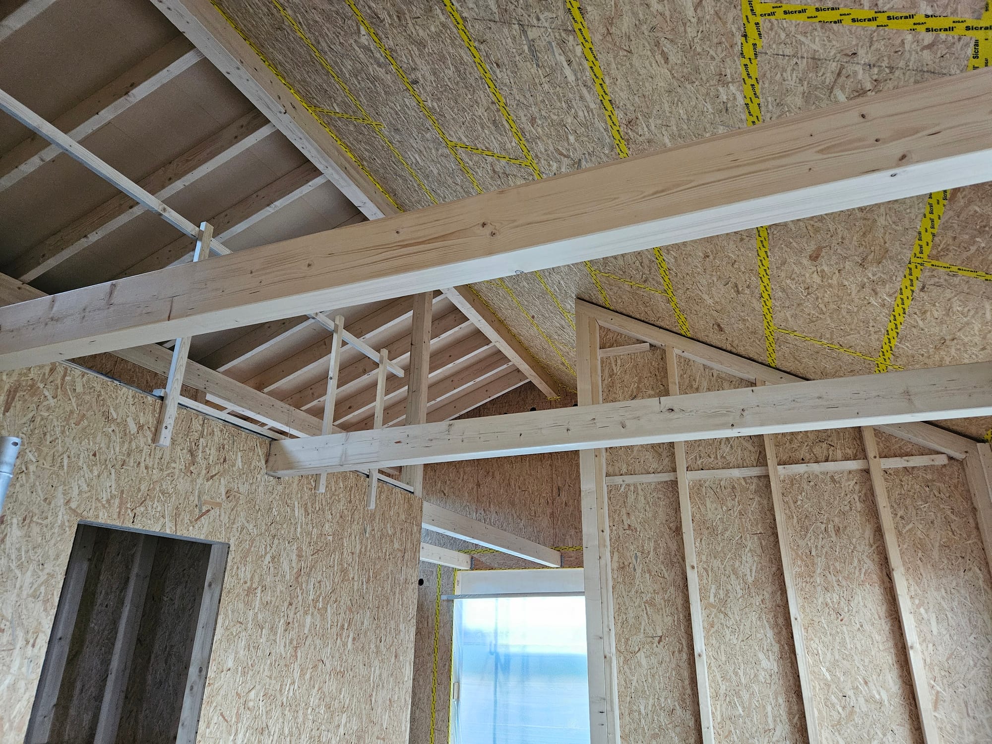 Wir schließen das nördliche Dach von Innen mit OSB Platten.