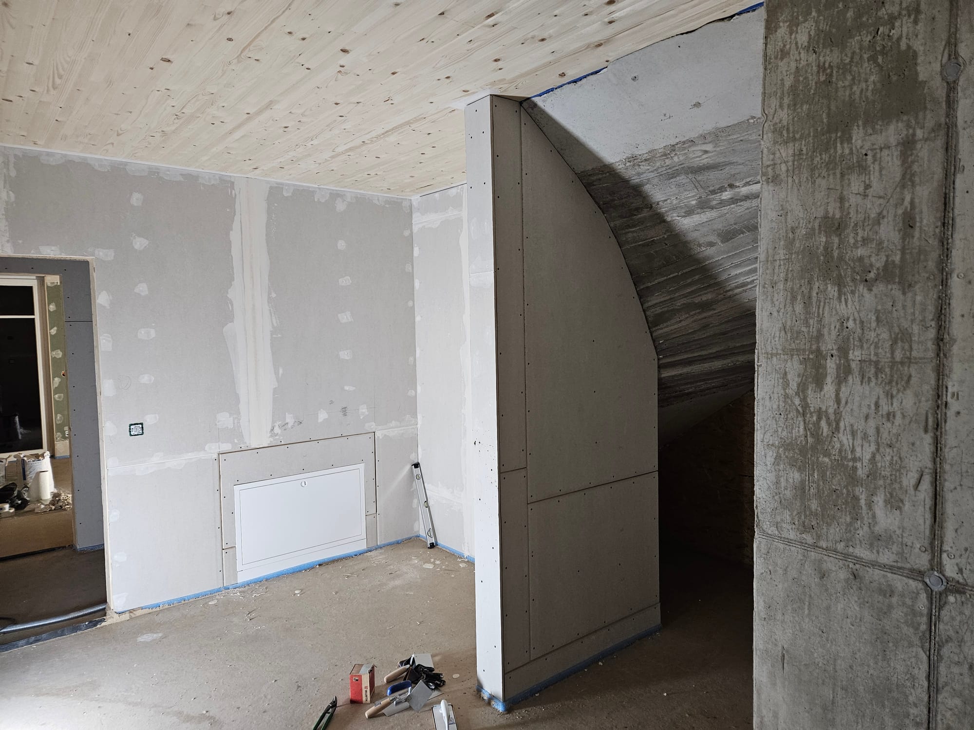 - Wir starten mit dem Spachteln in Keller, Gästezimmer und Werkstatt
