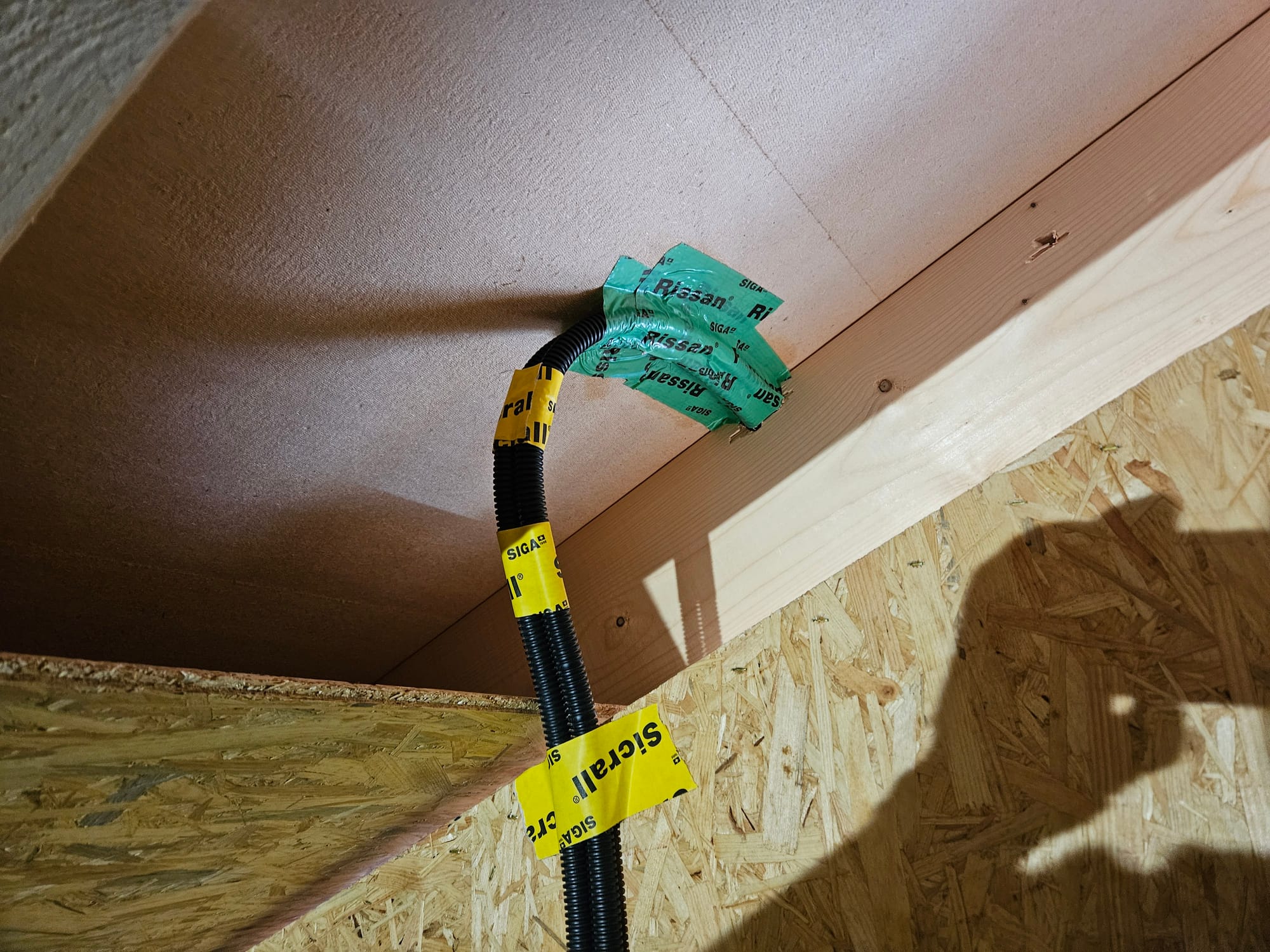 - Kabel für Dachfenster sind in Leerrohren verlegt