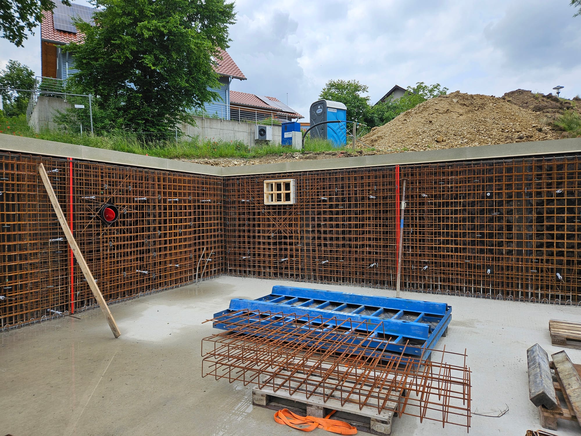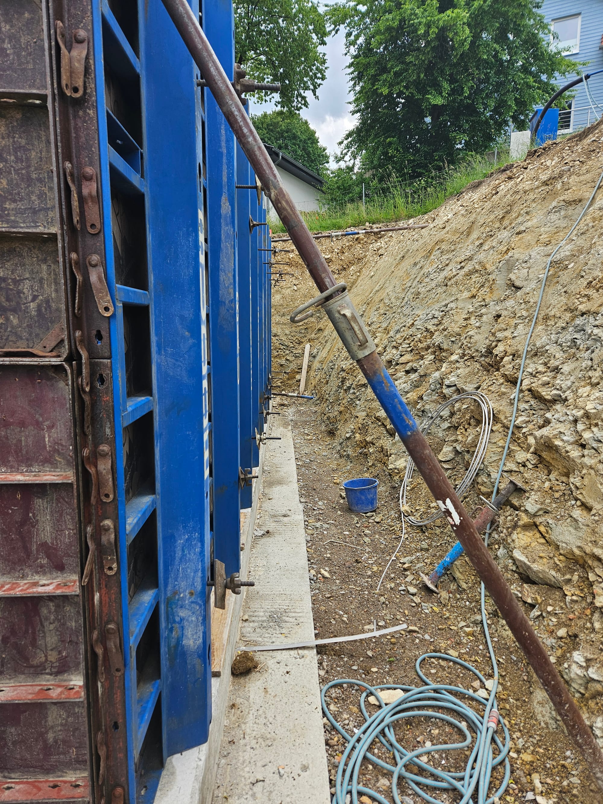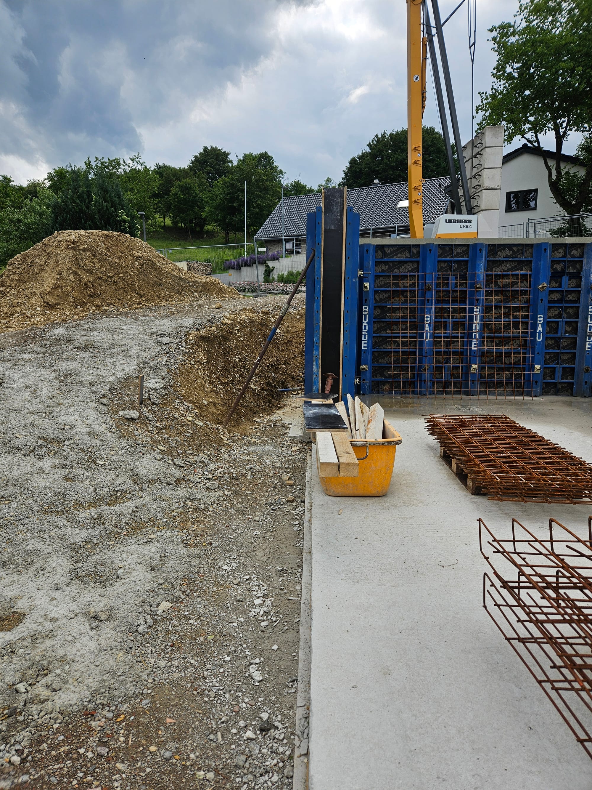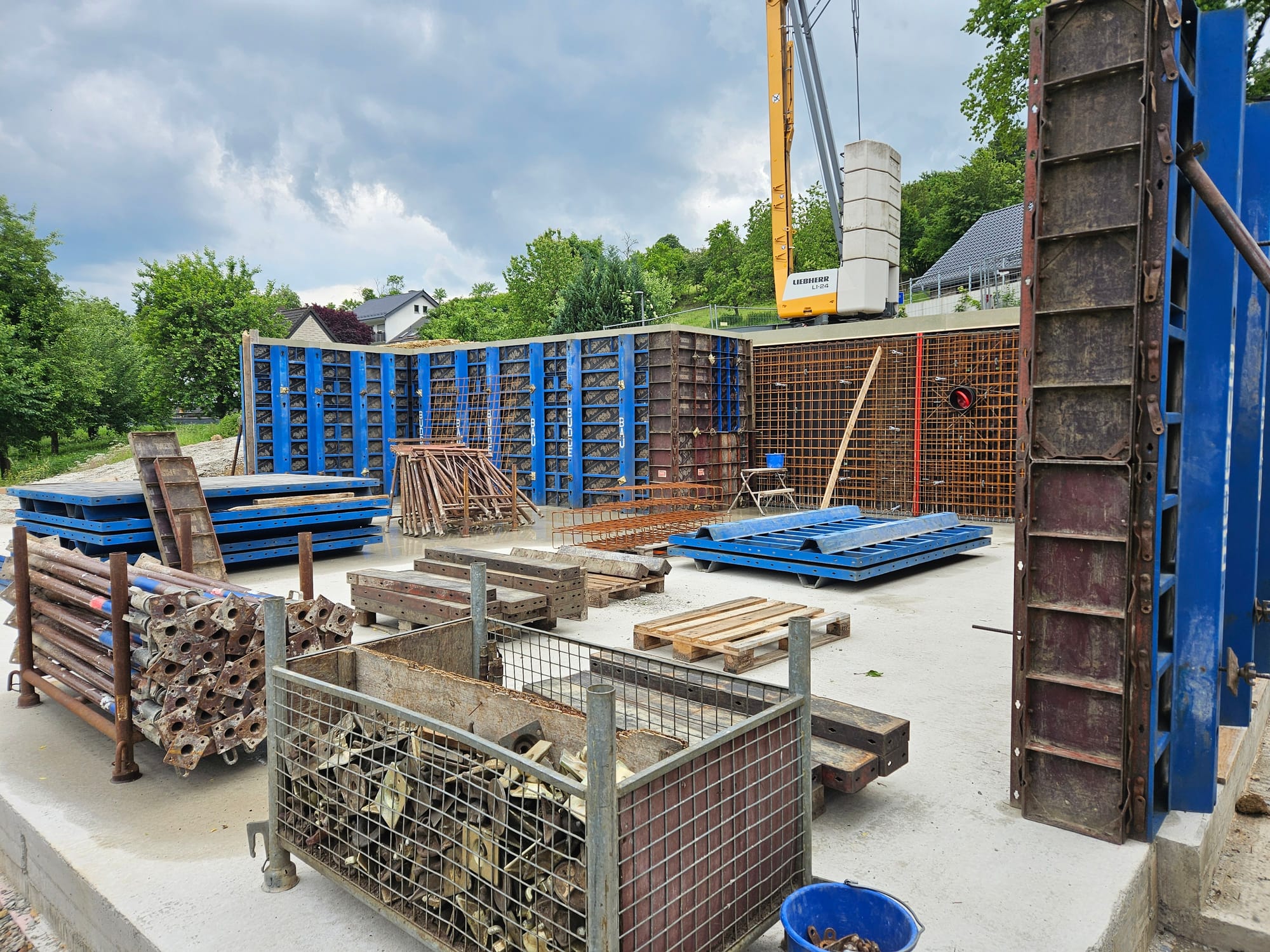 - Die äußere Schalung für die Kellerwande würde aufgestellt