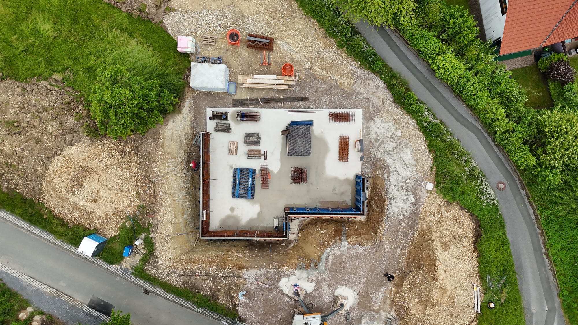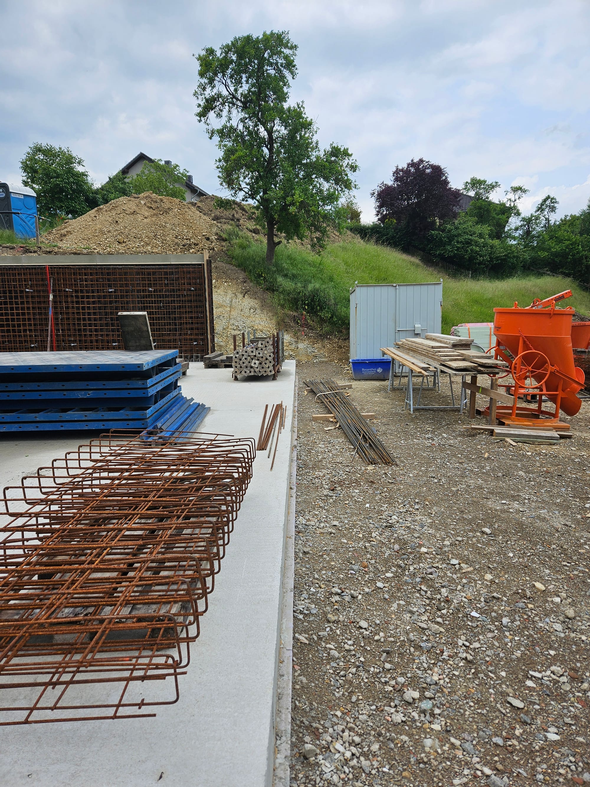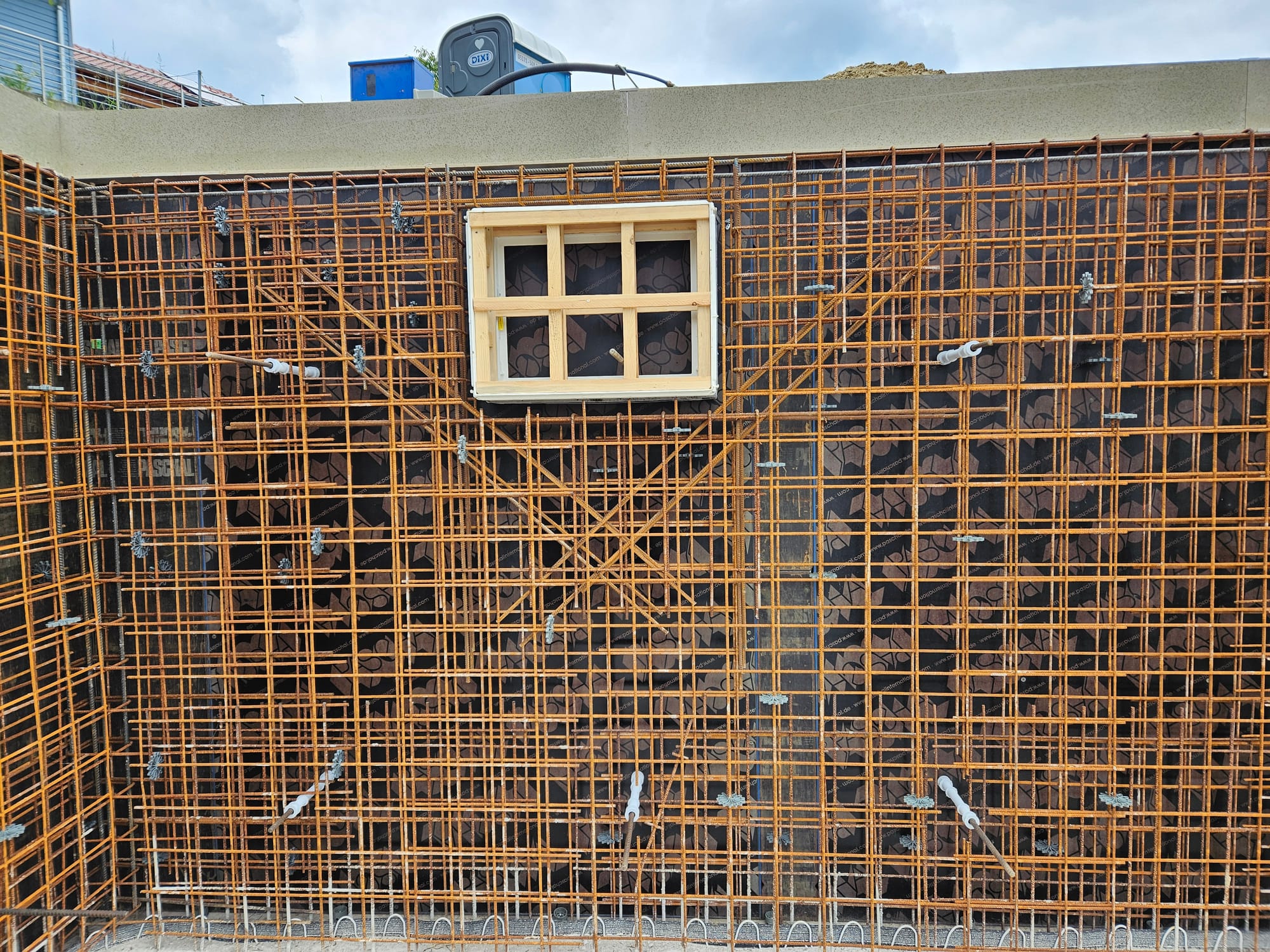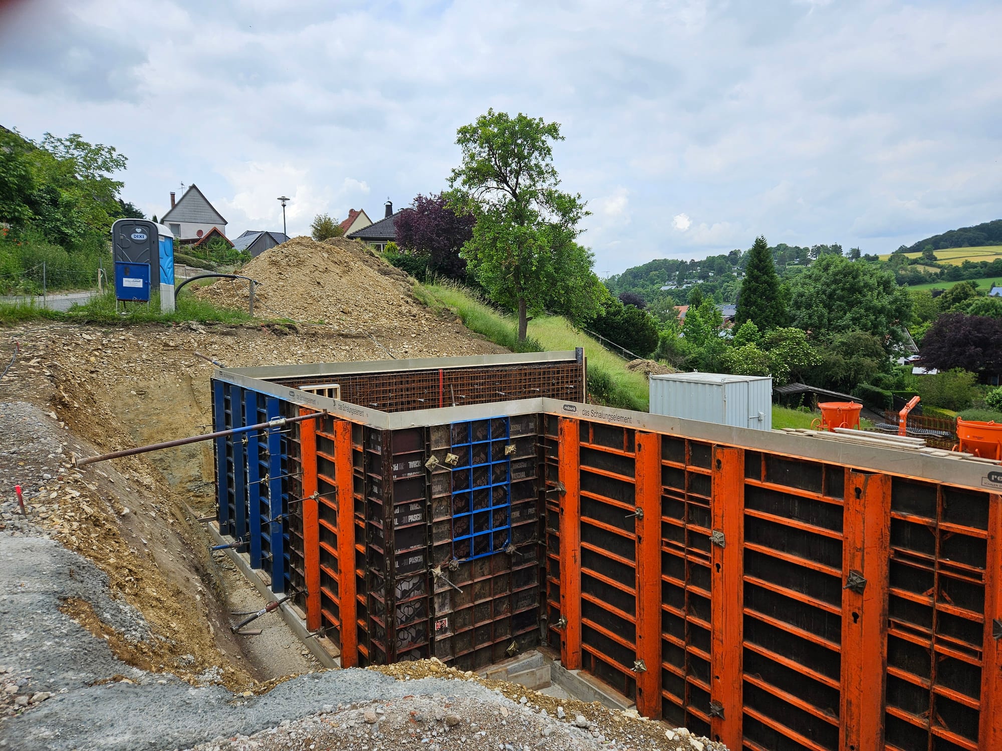 - Die äußere Schalung für die Kellerwande würde aufgestellt