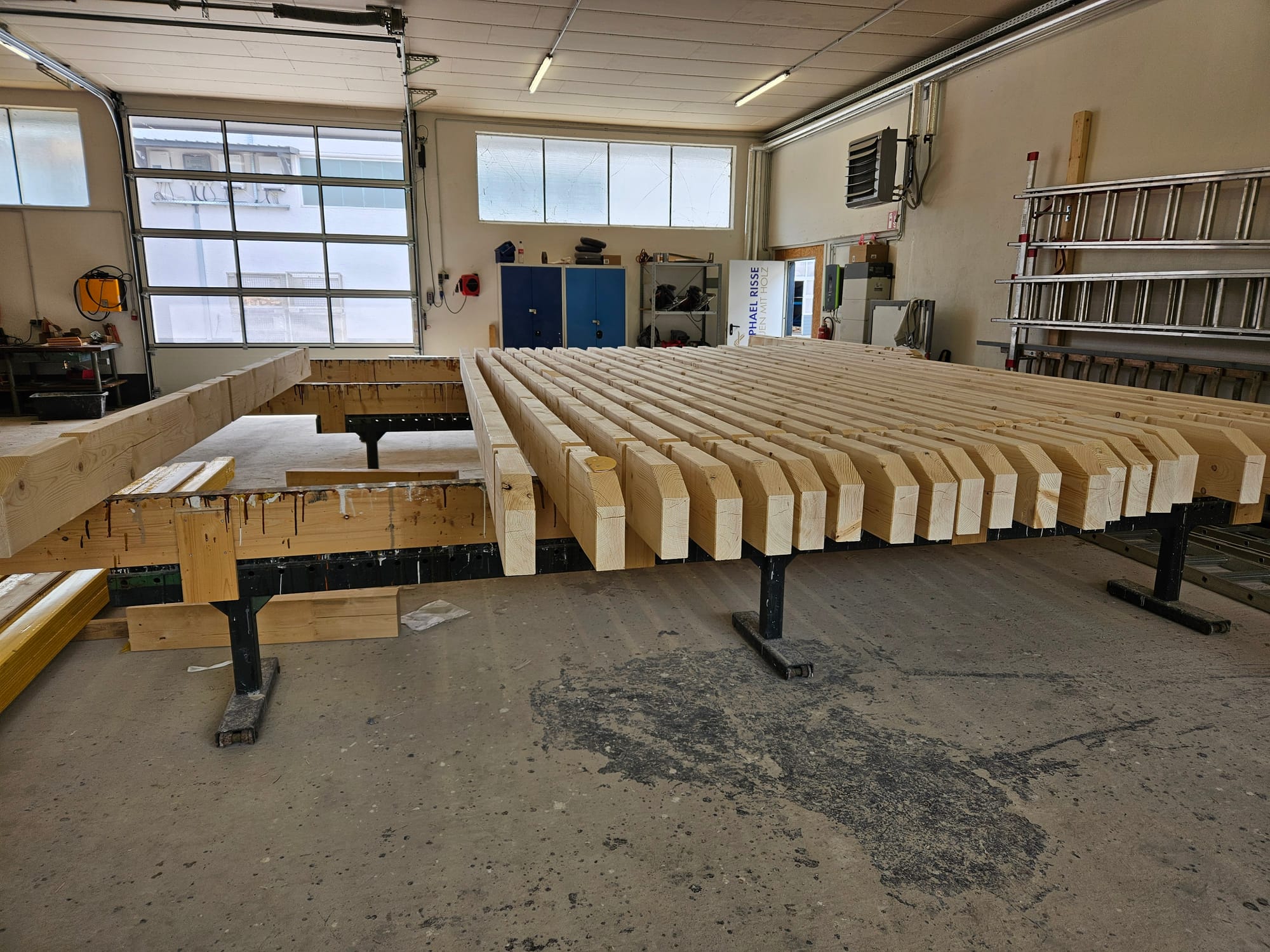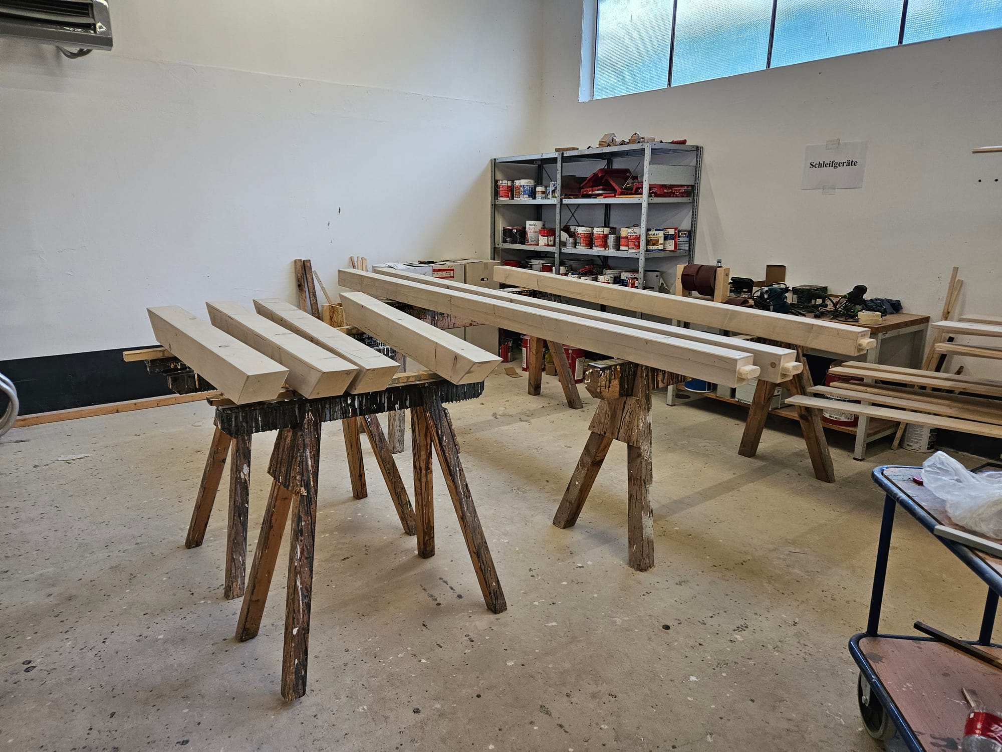 Es geht weiter. Was ist passiert? * Büro final Q2 gespachtelt * Gäste Decke zum 2. Mal lasiert * Keller grundiert * An der Holzfassade im Eingang wurde weiter gearbeitet Welche Firmen waren vor Ort? * Wir * Zimmerei Sonstiges * Sonstiges