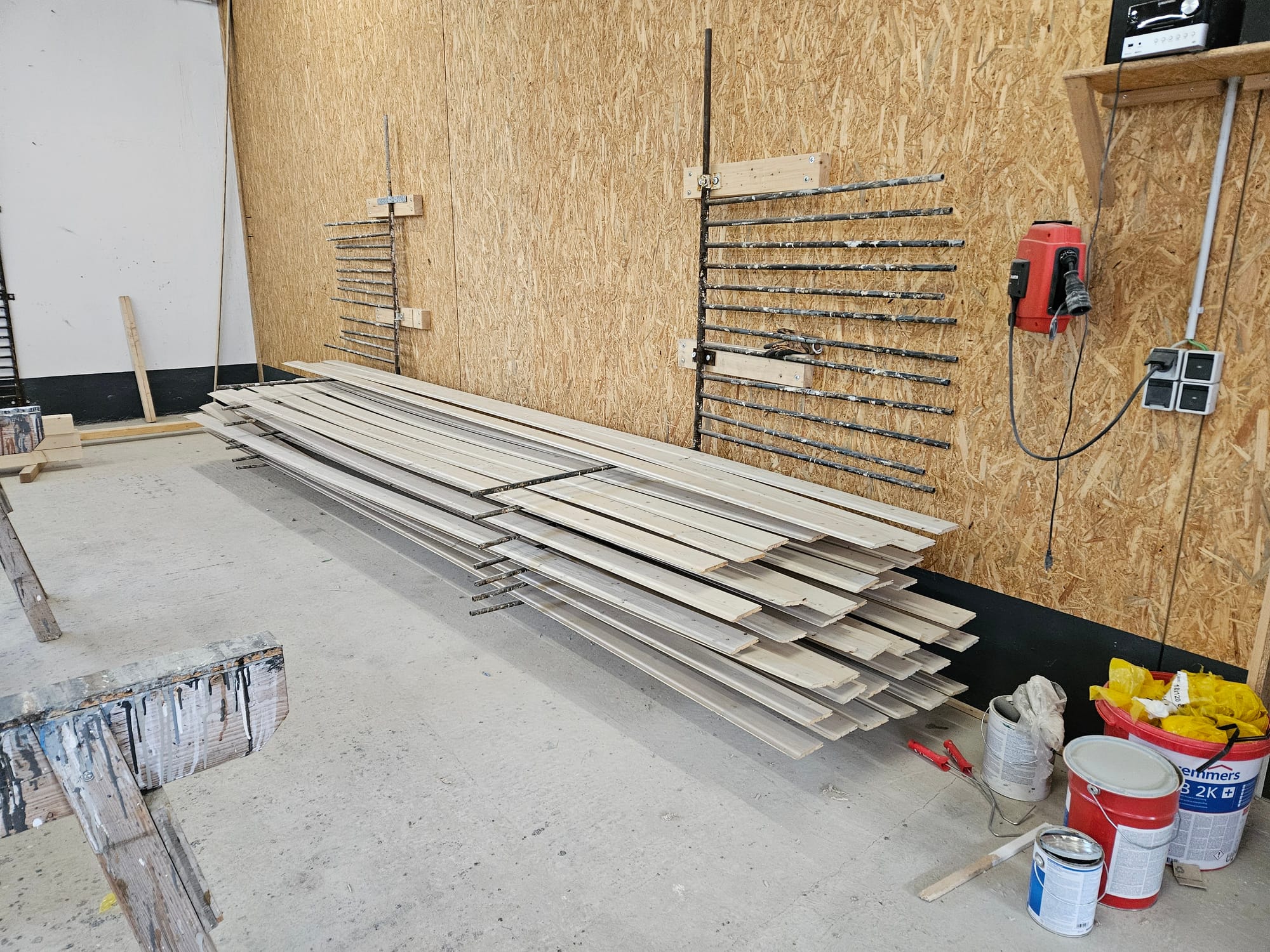Wir streichen den ersten Raum mit Lehmfarbe. Was ist passiert? * Gäste mit Lehmfarbe gestrichen * Büro final Q2 gespachtelt * Flur final Q2 gespachtelt * Waschküche Q1 gespachtelt * Außenfühler Heizung gebohrt Welche Firmen waren vor Ort? * Wir Sonstiges * Sonstiges