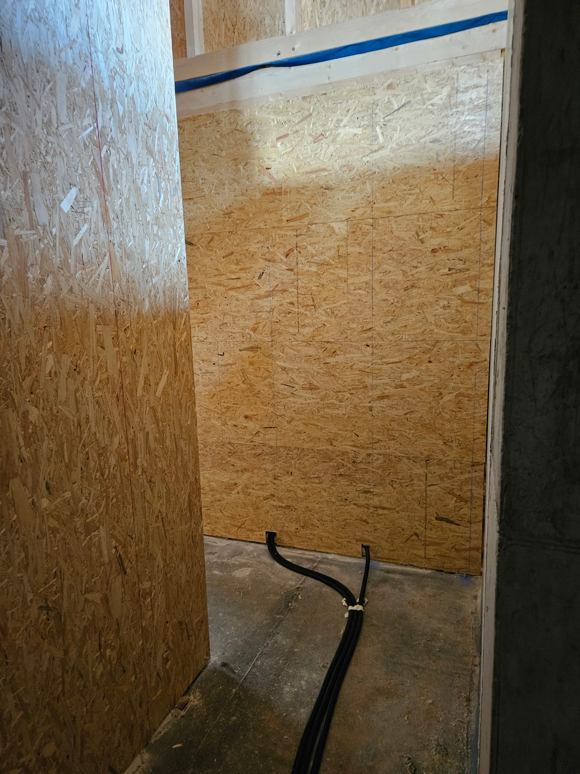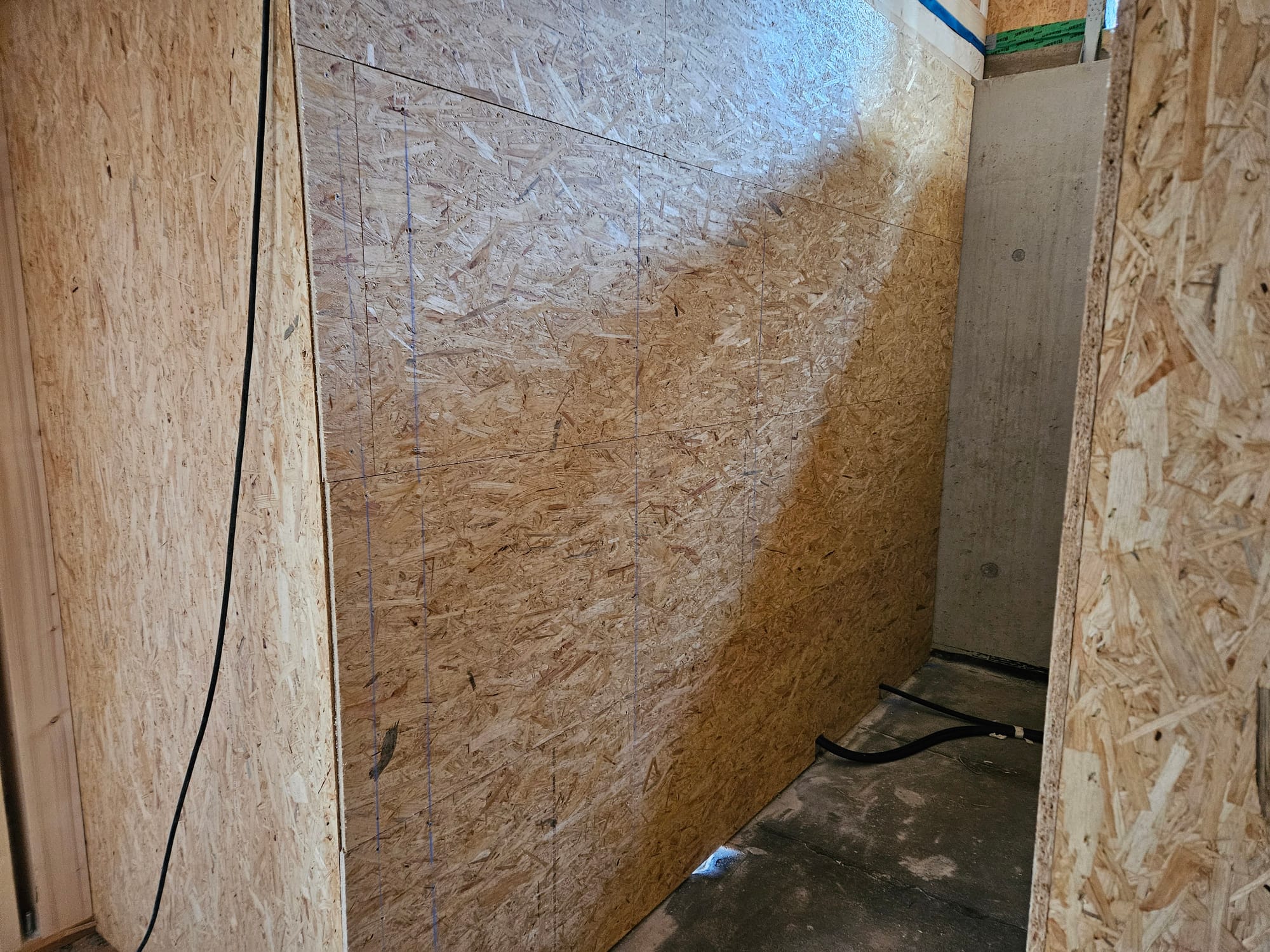 - Erste Wand mit Dämmung gefüllt und mit OSB beplankt