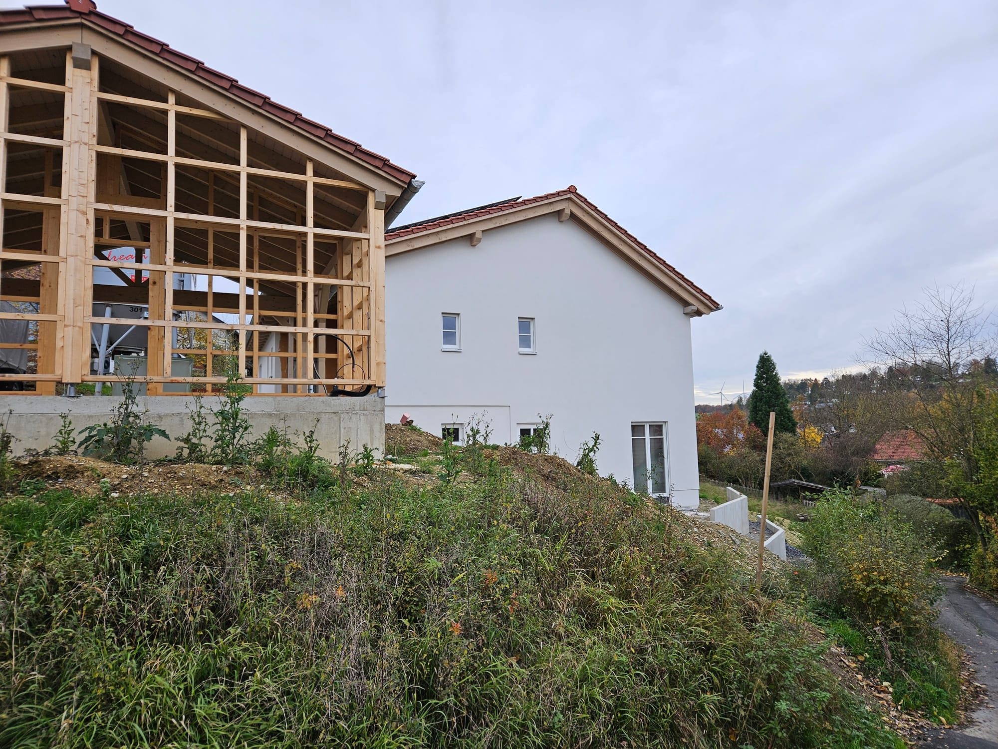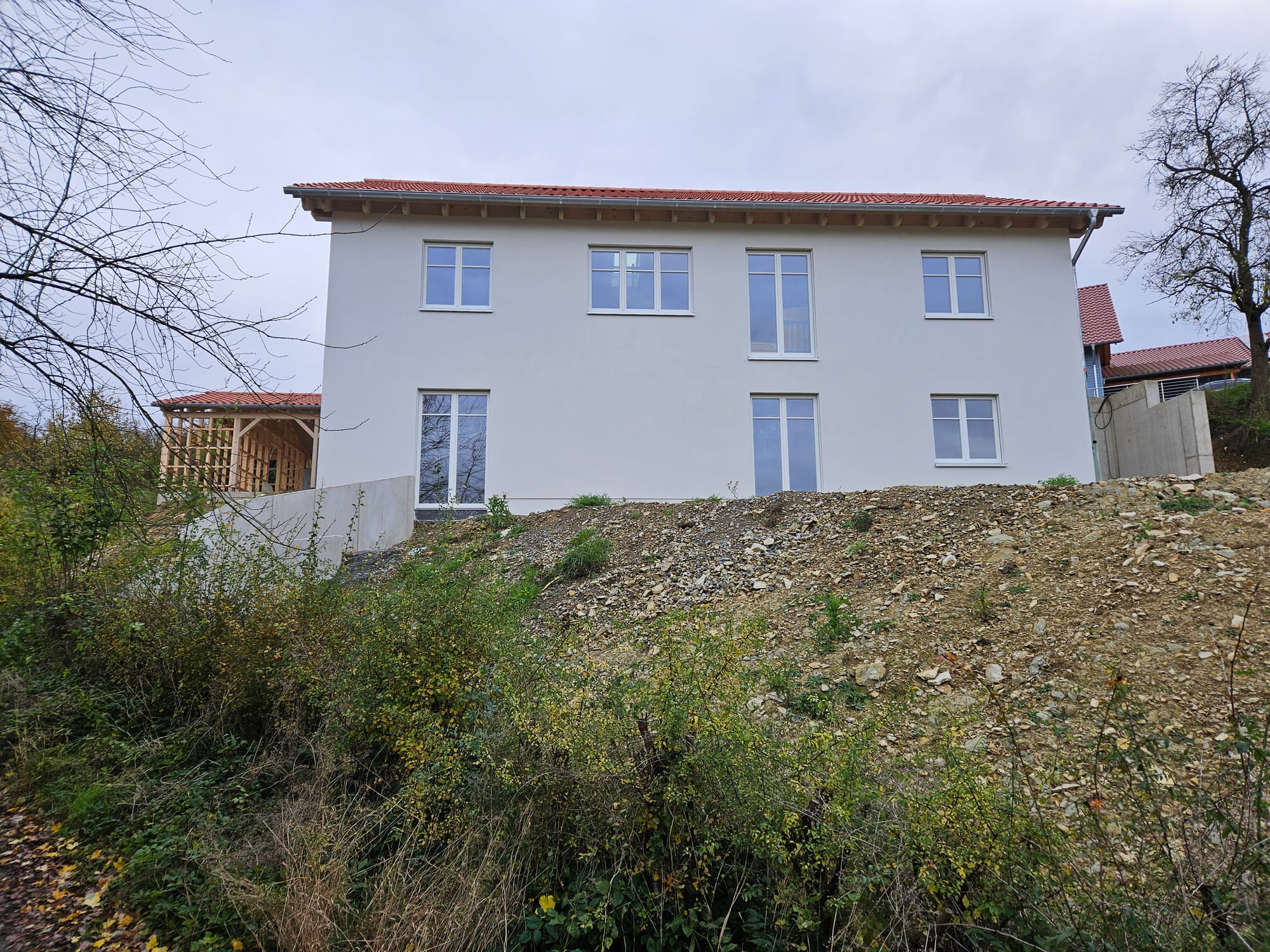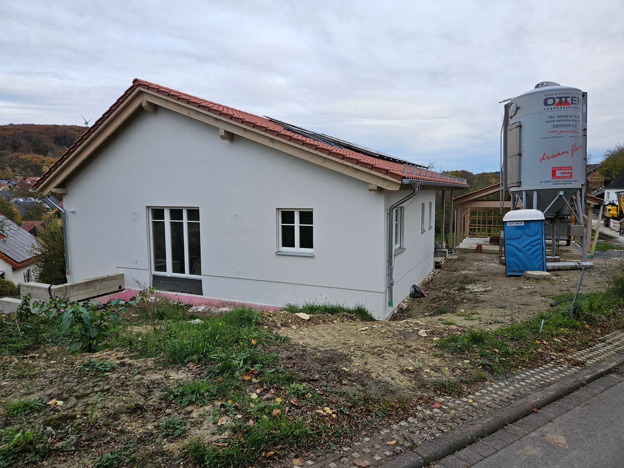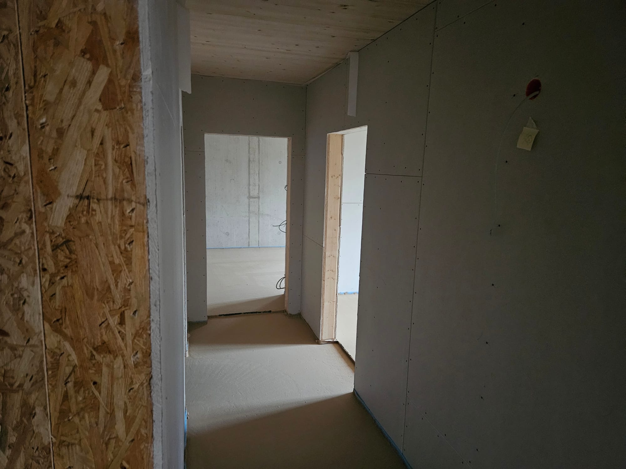 Es geht weiter. Was ist passiert? * Büro final Q2 gespachtelt * Gäste Decke zum 2. Mal lasiert * Keller grundiert * An der Holzfassade im Eingang wurde weiter gearbeitet Welche Firmen waren vor Ort? * Wir * Zimmerei Sonstiges * Sonstiges