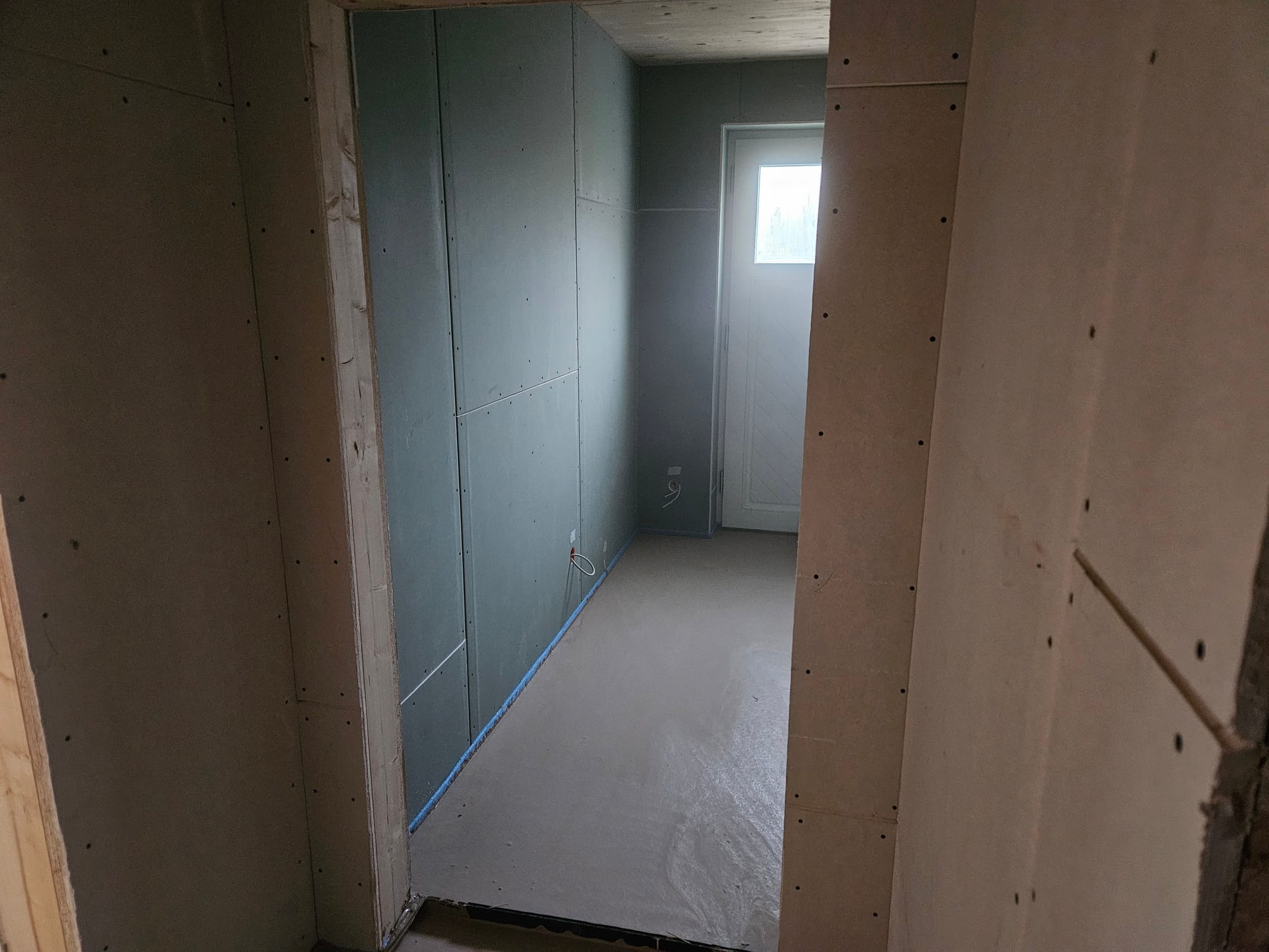 Wir streichen den ersten Raum mit Lehmfarbe. Was ist passiert? * Gäste mit Lehmfarbe gestrichen * Büro final Q2 gespachtelt * Flur final Q2 gespachtelt * Waschküche Q1 gespachtelt * Außenfühler Heizung gebohrt Welche Firmen waren vor Ort? * Wir Sonstiges * Sonstiges