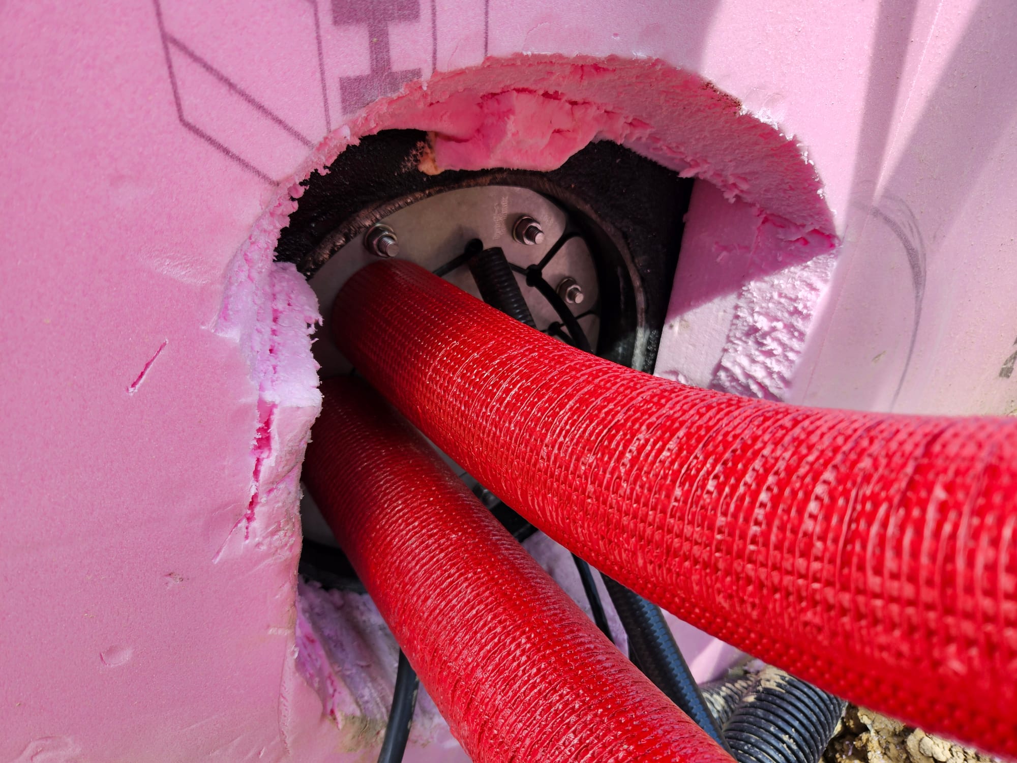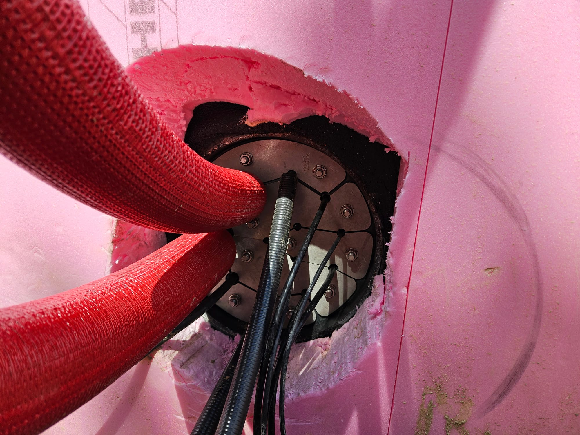 - Elektriker hat alle Leitungen in die Mauerdurchführung eingezogen und die Dichtung angebracht