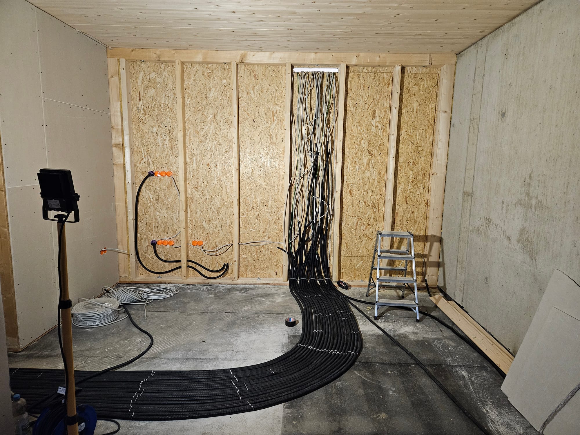 - Das große Kabelpaket aus der Werkstatt in den Technikraum geführt
