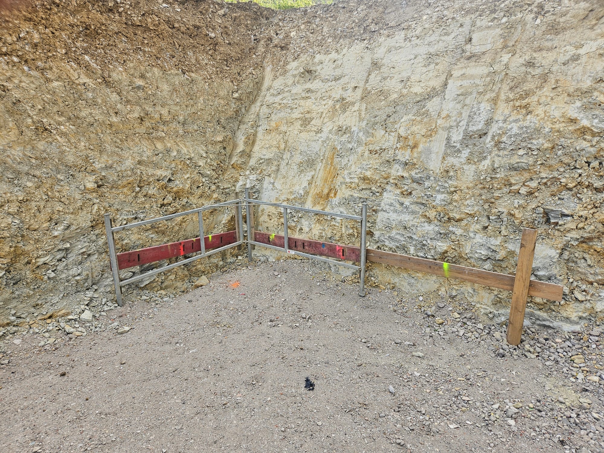 Der Vermesser war da und hat das Schnurgerüst gestellt.
