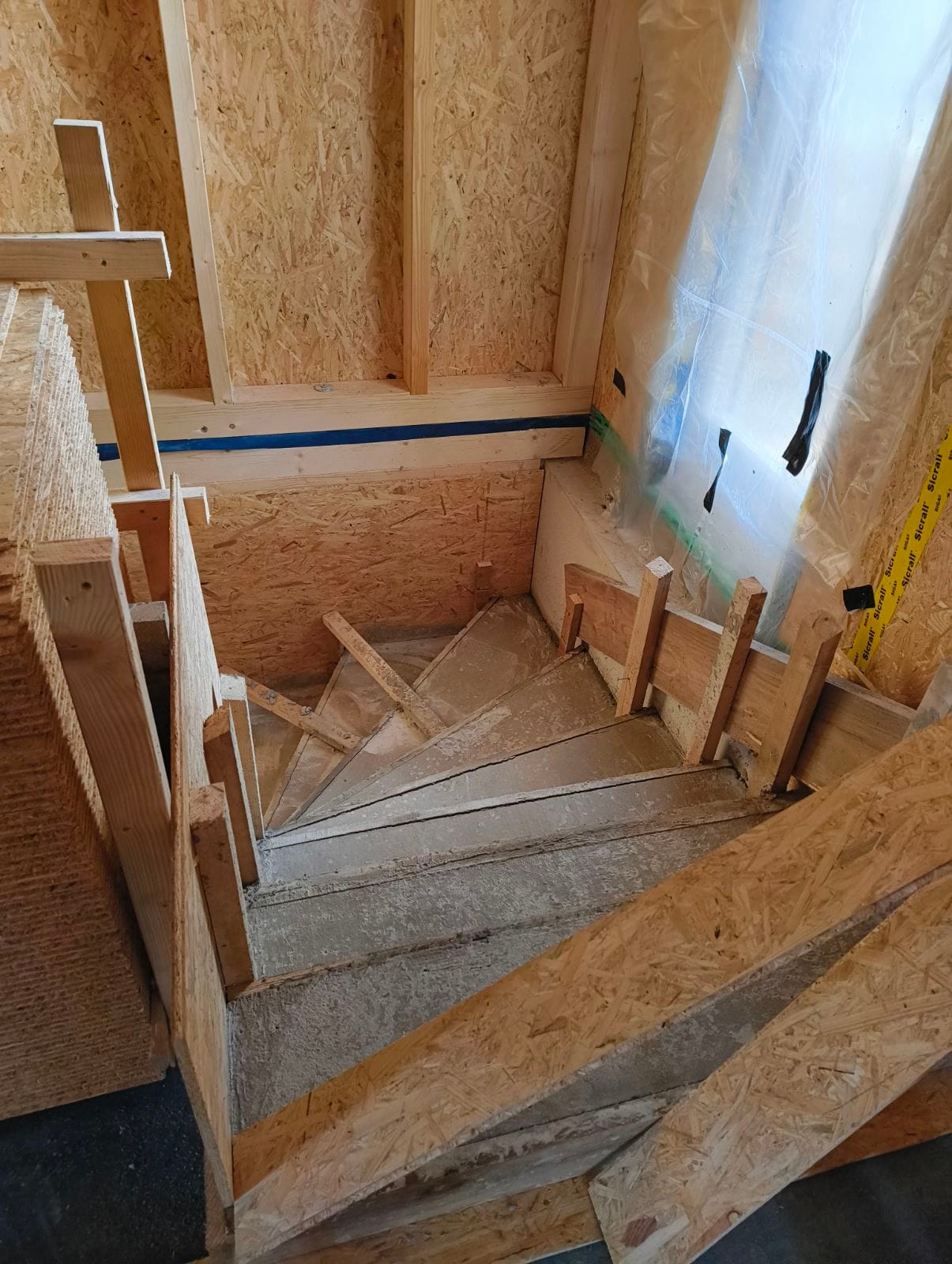 Die Innentreppe wird betoniert und die Fassade wurde gestrichen