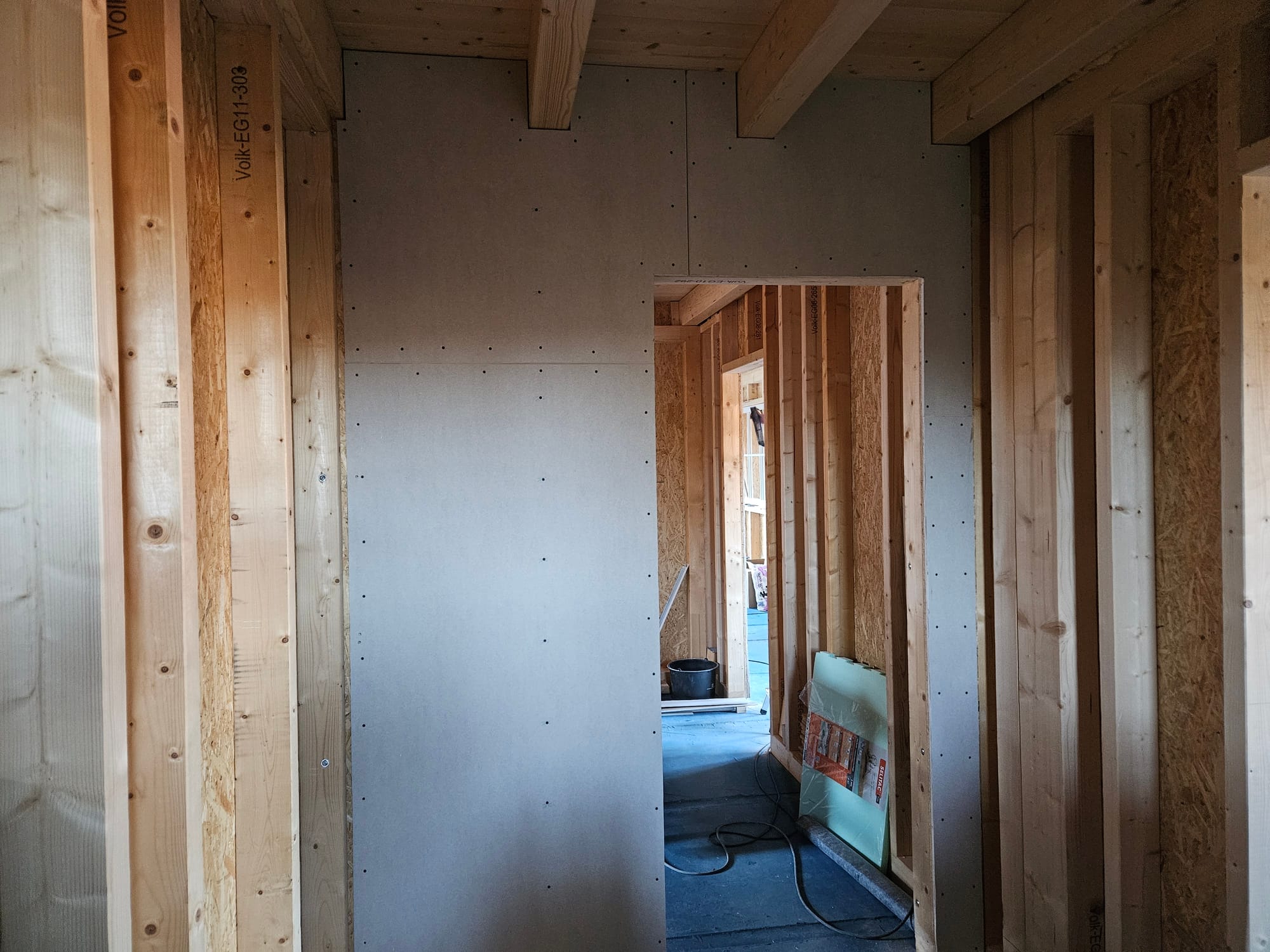 - Wohnzimmer die einzige Wand mit Gipskarton beplankt