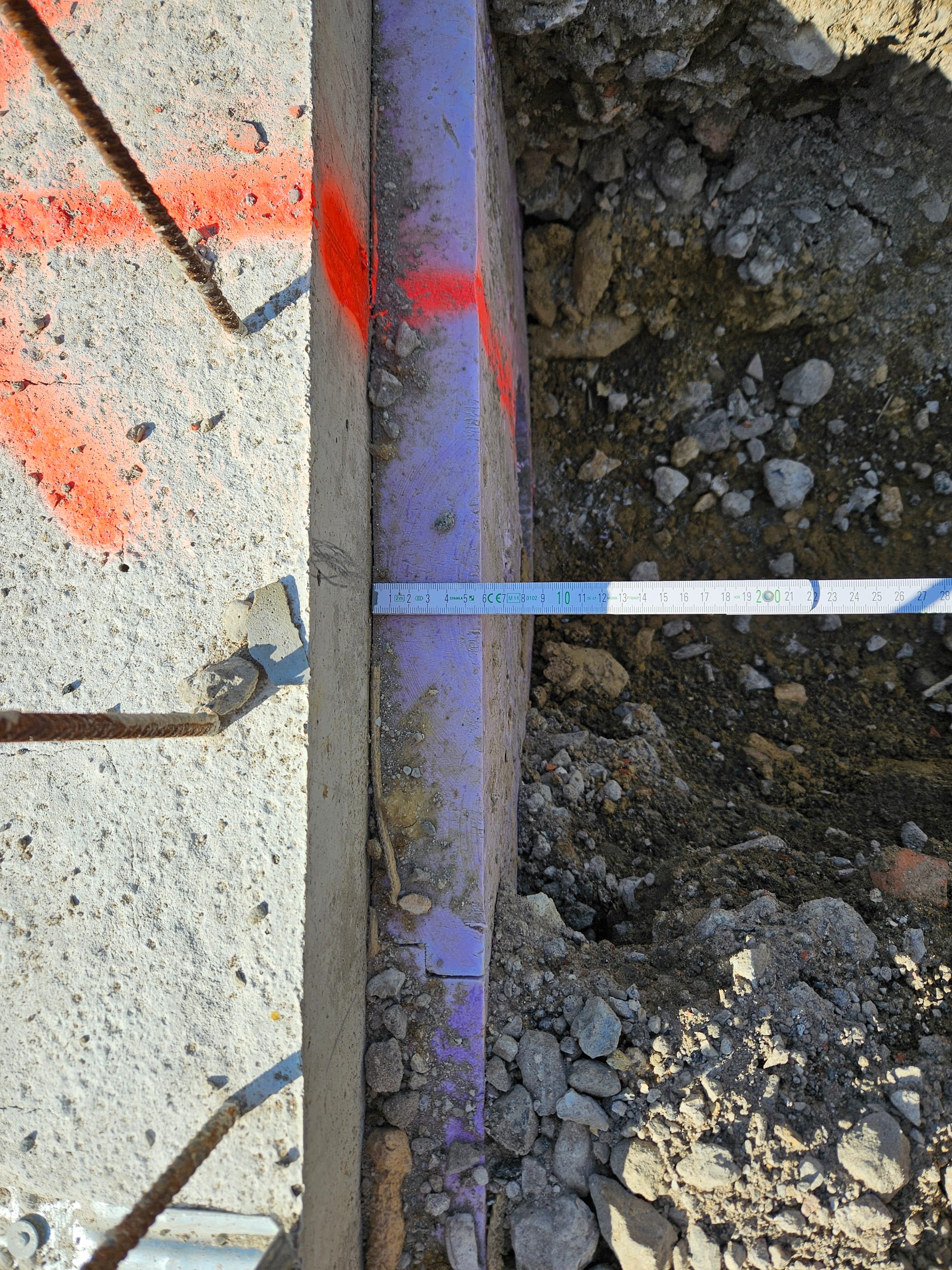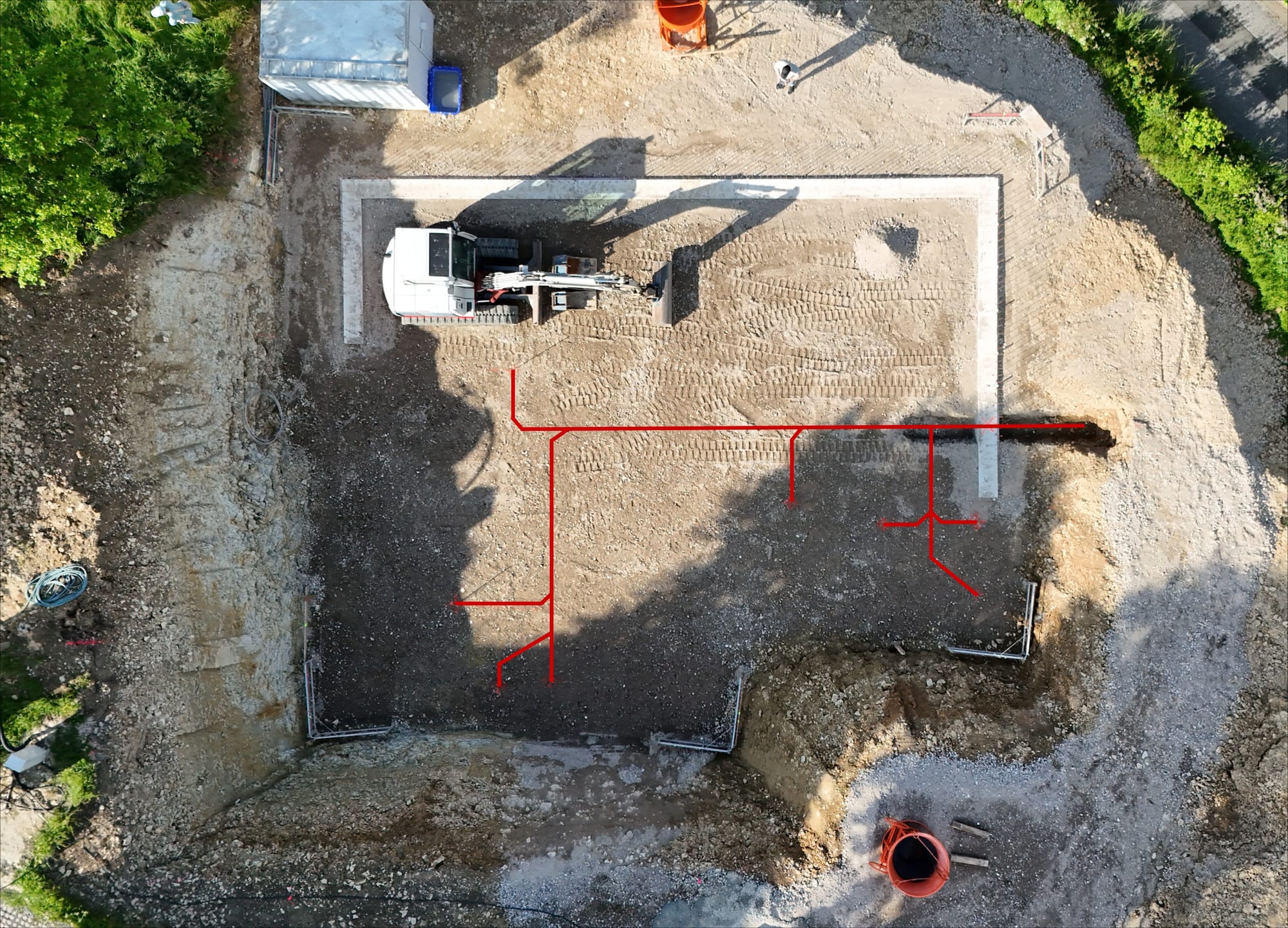 - Die Leitungen unter der Bodenplatte wurden markiert (optimierter Verlauf, nicht nach Plan)
