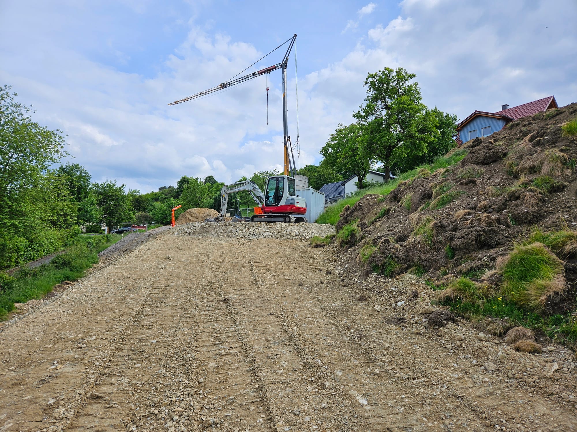 - Jetzt ist ein kleinerer Bagger vor Ort