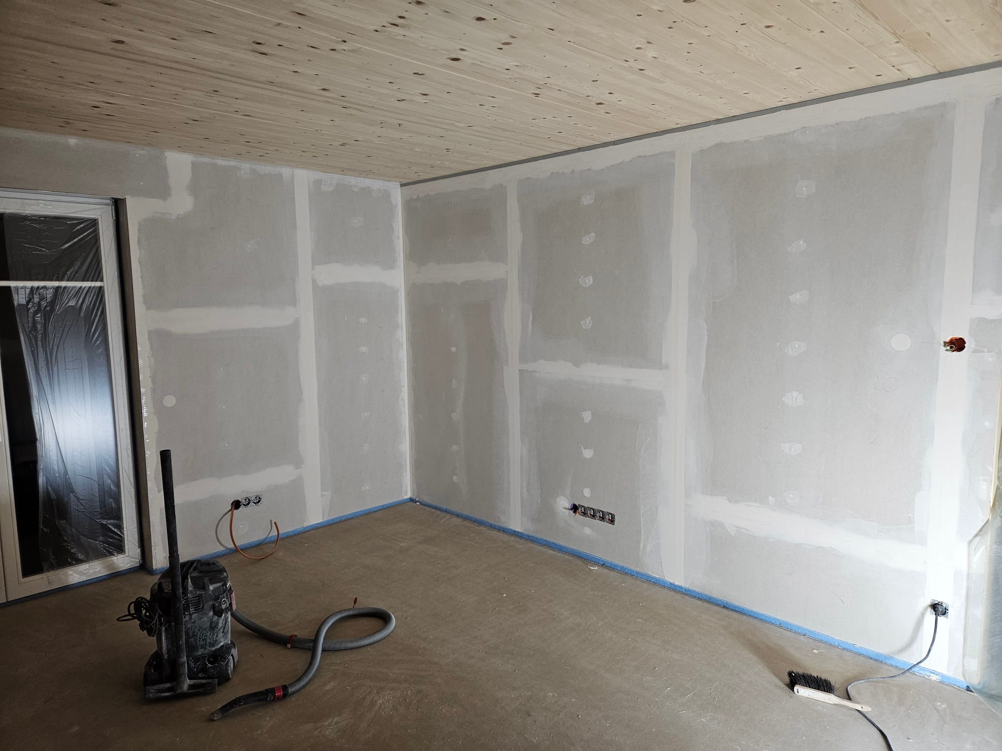 Wir streichen den ersten Raum mit Lehmfarbe. Was ist passiert? * Gäste mit Lehmfarbe gestrichen * Büro final Q2 gespachtelt * Flur final Q2 gespachtelt * Waschküche Q1 gespachtelt * Außenfühler Heizung gebohrt Welche Firmen waren vor Ort? * Wir Sonstiges * Sonstiges