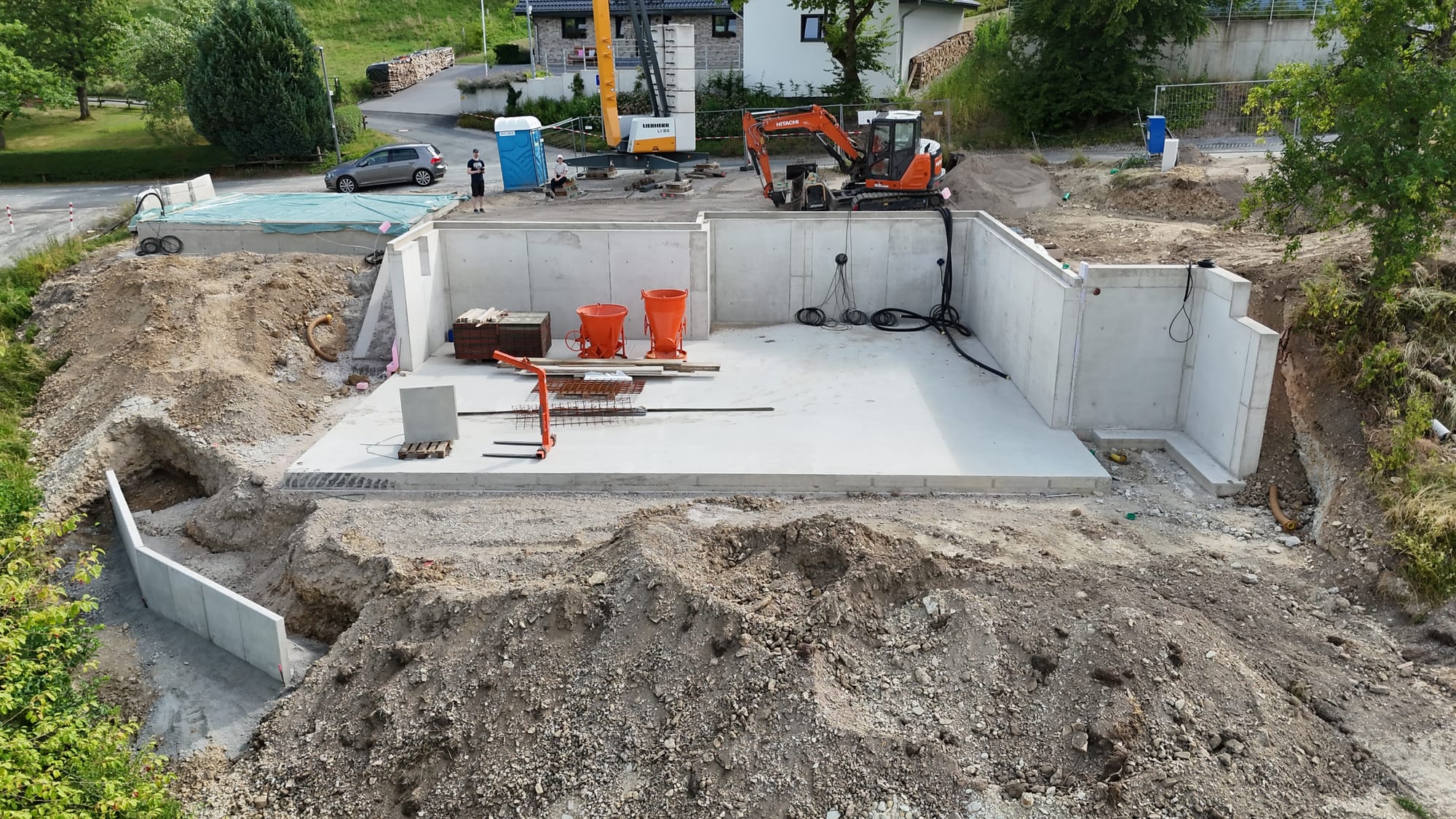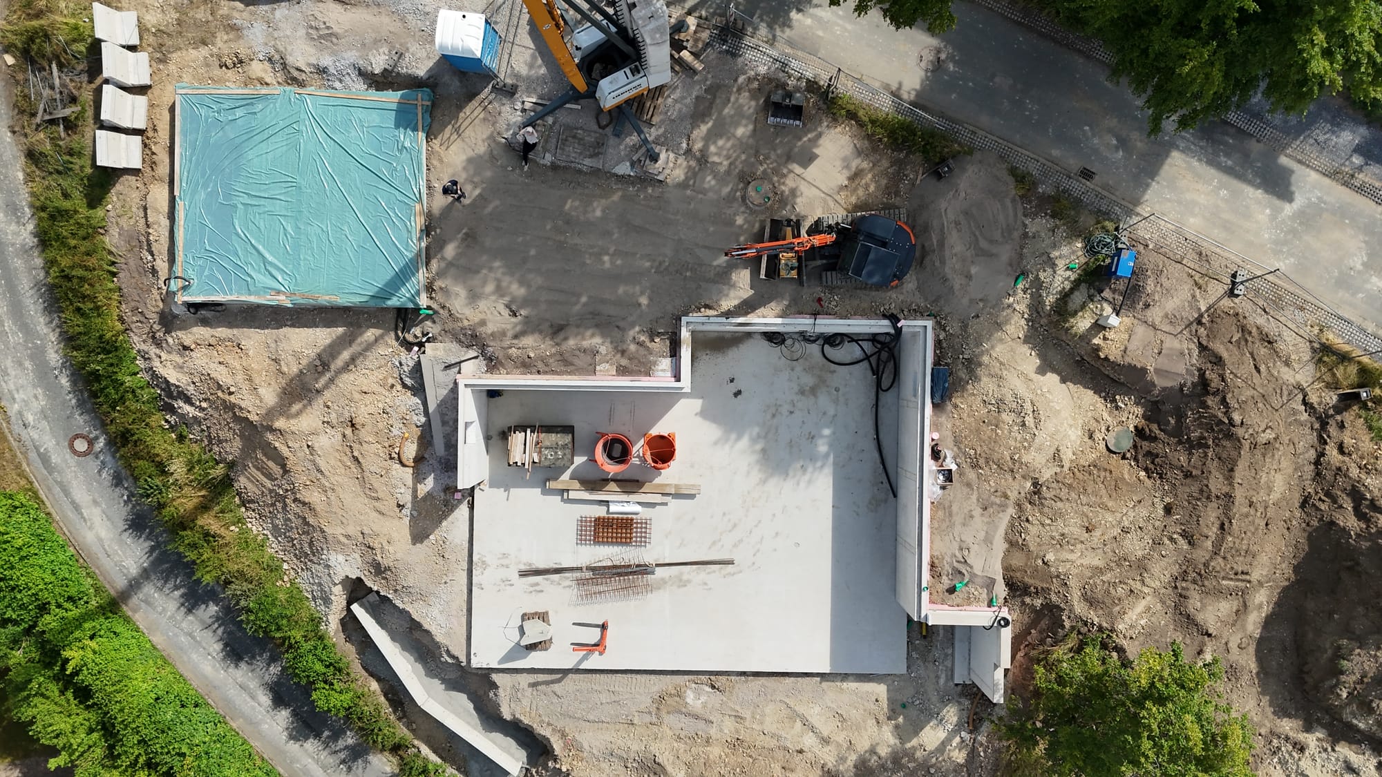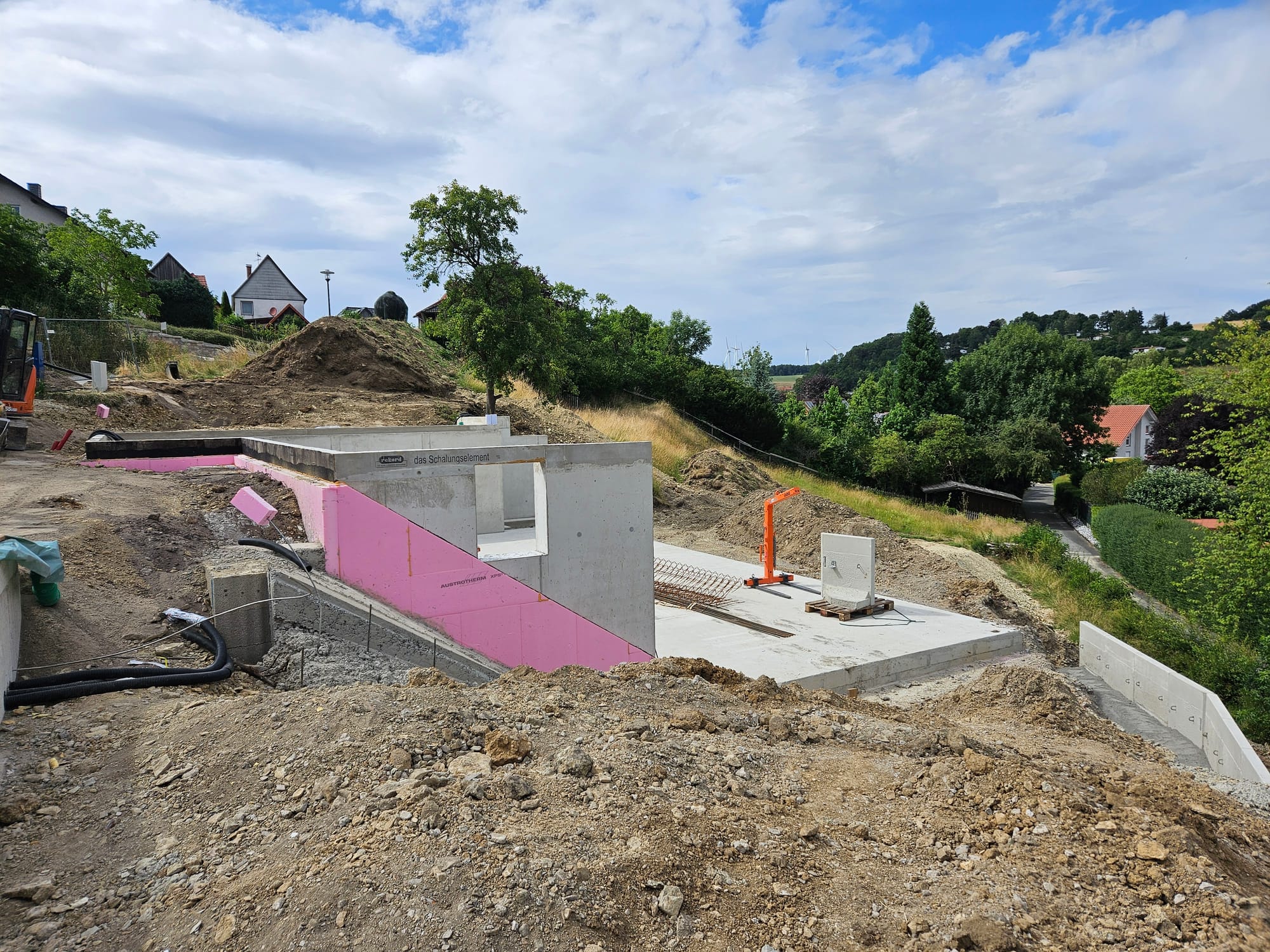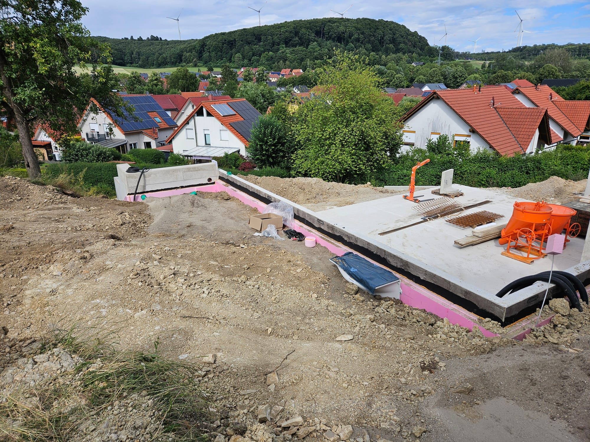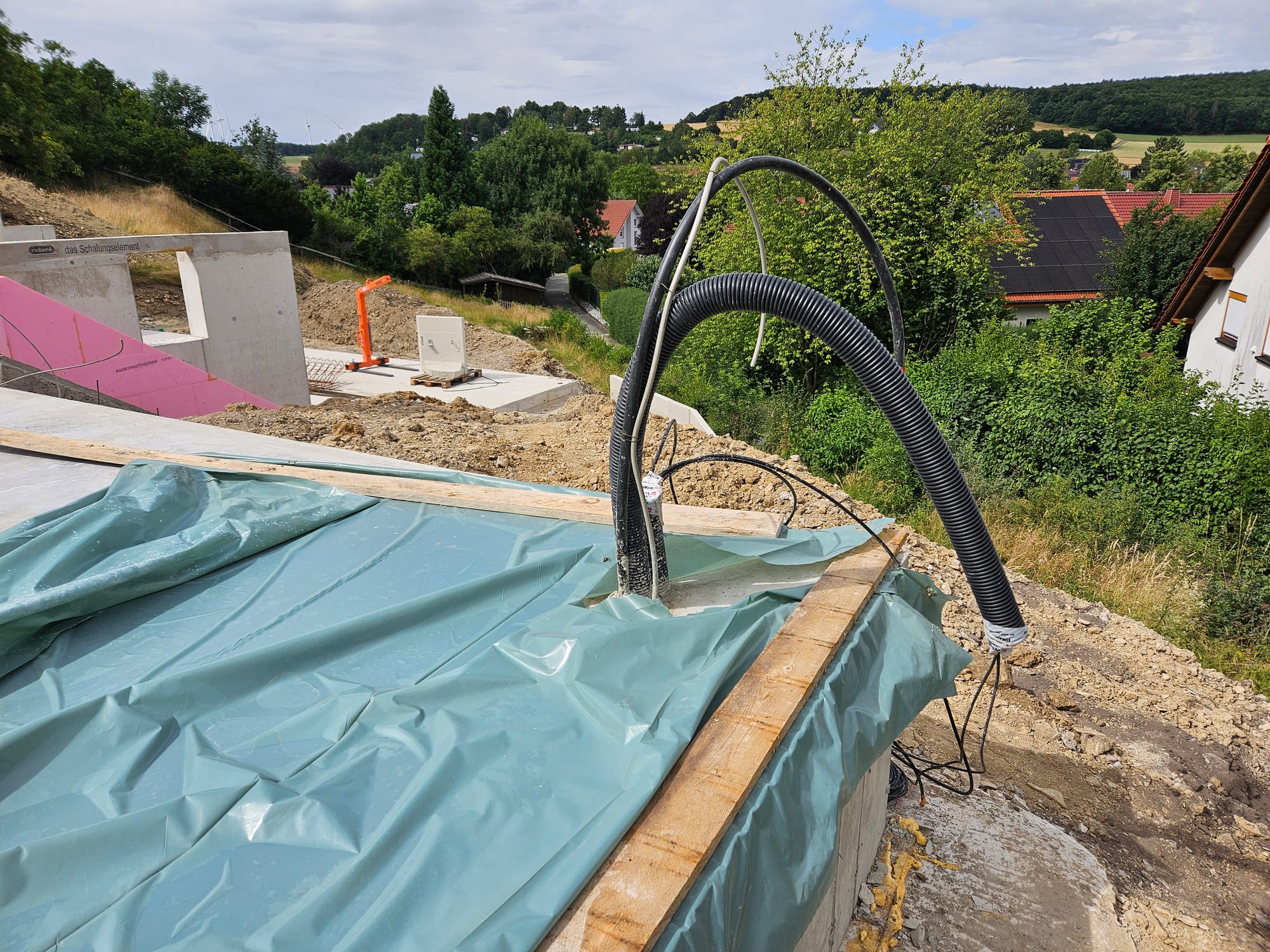 - Bodenplatte Carport wurde ausgeschalt und mit Plane bedeckt.