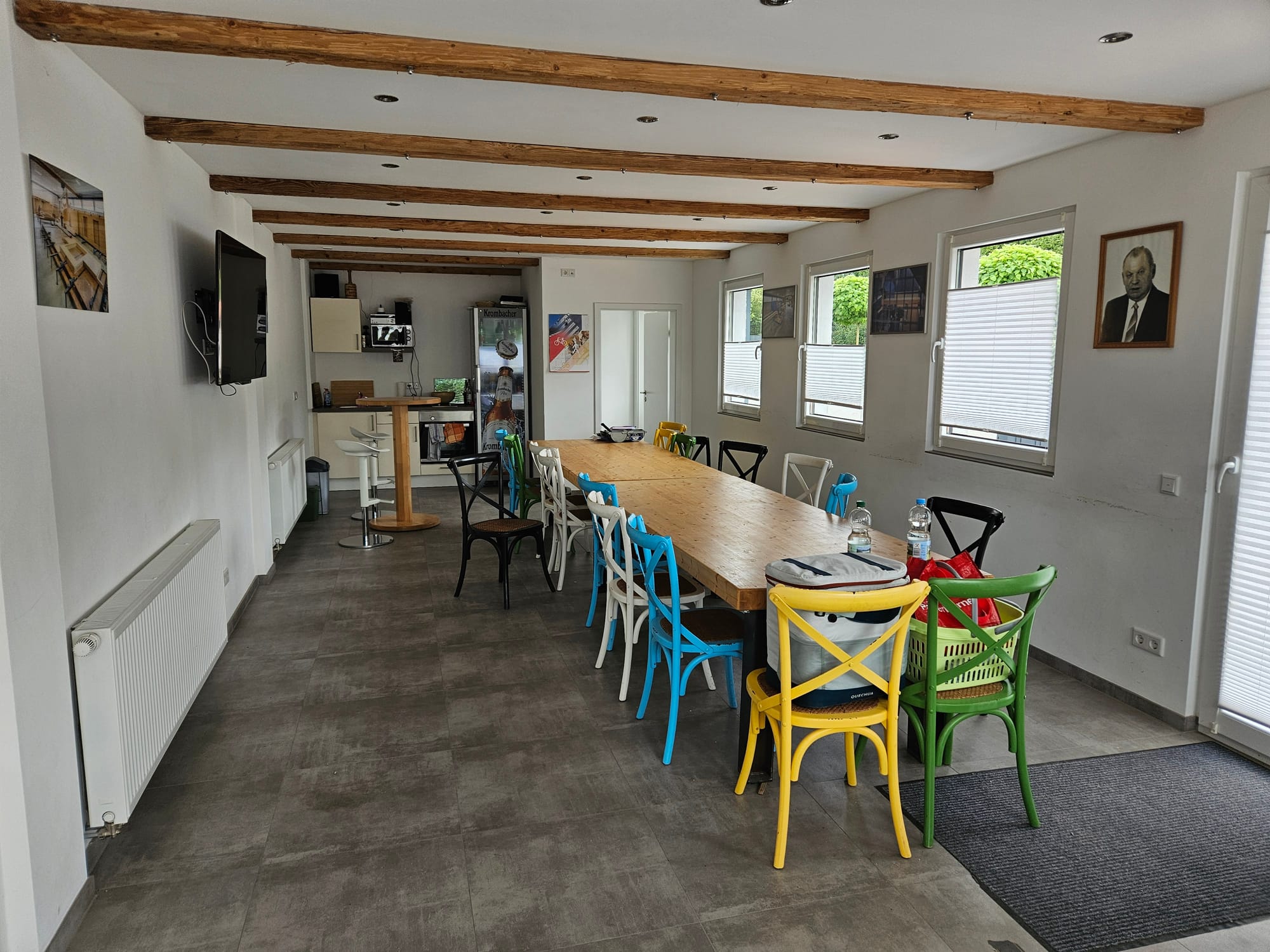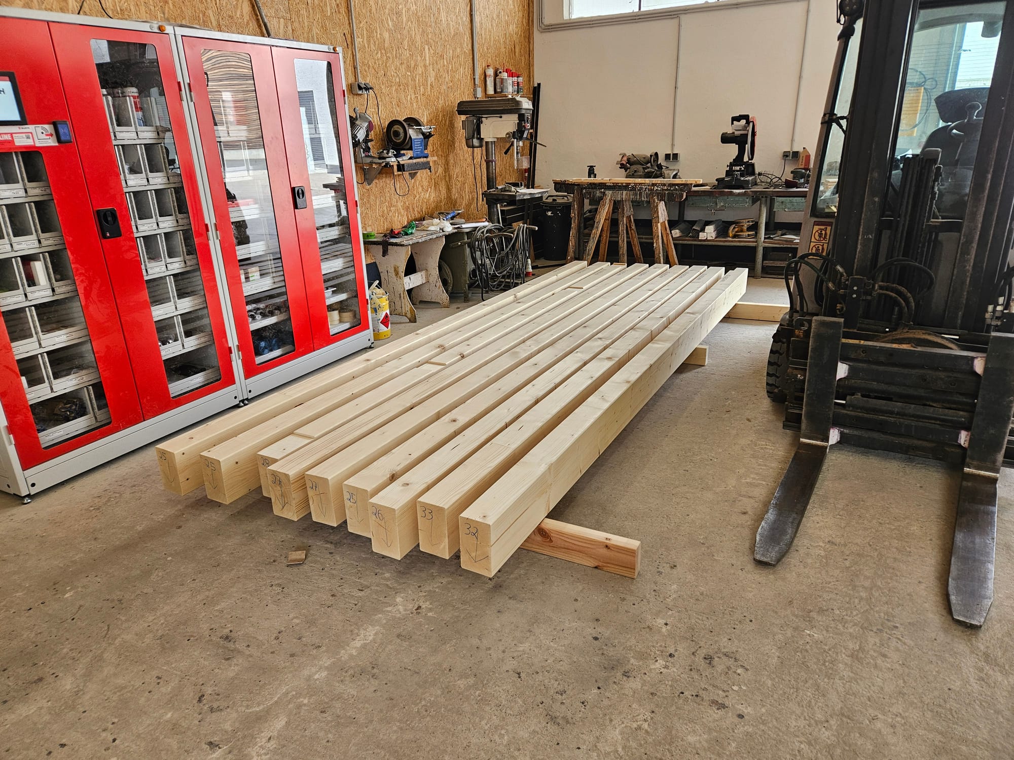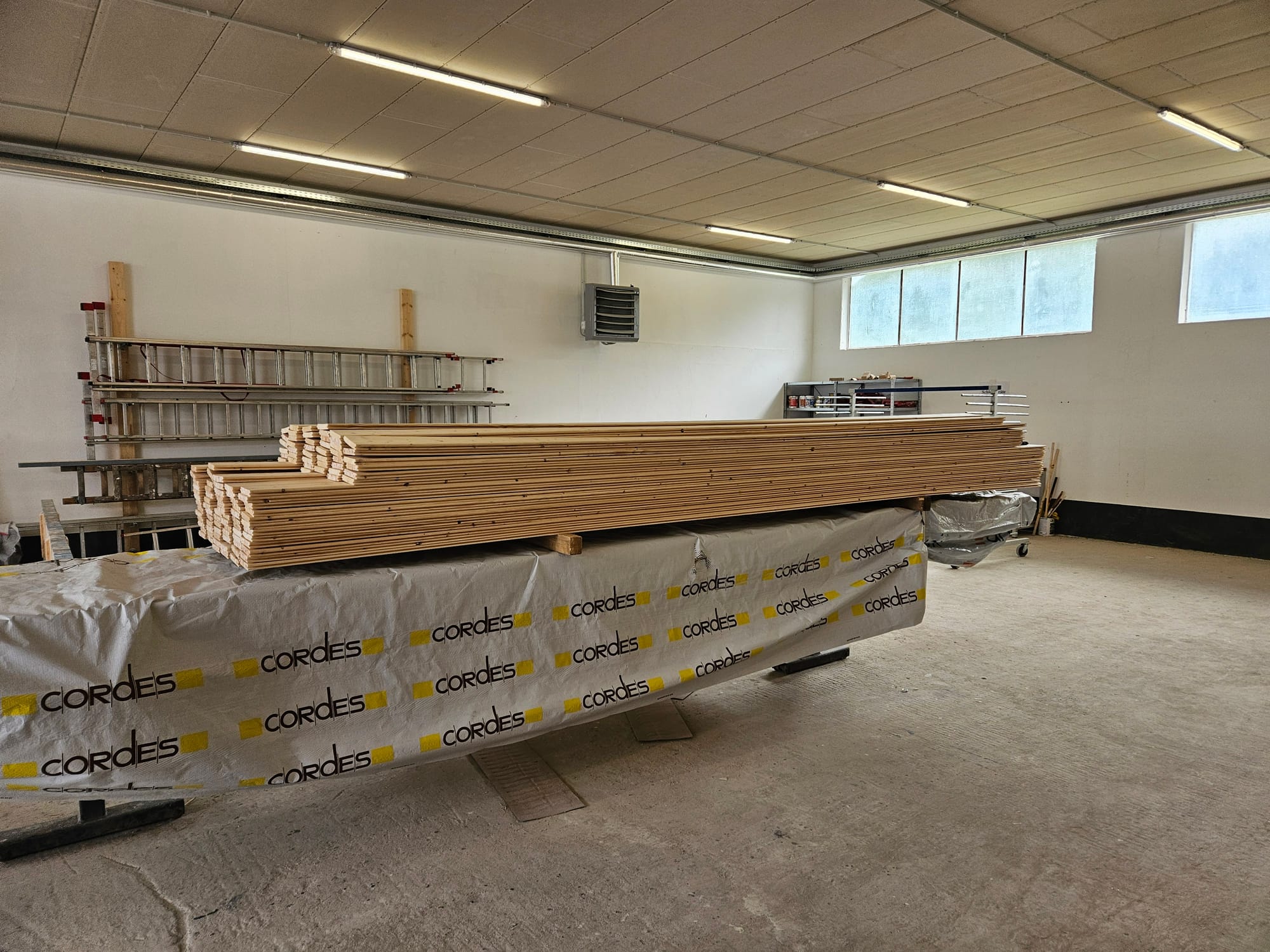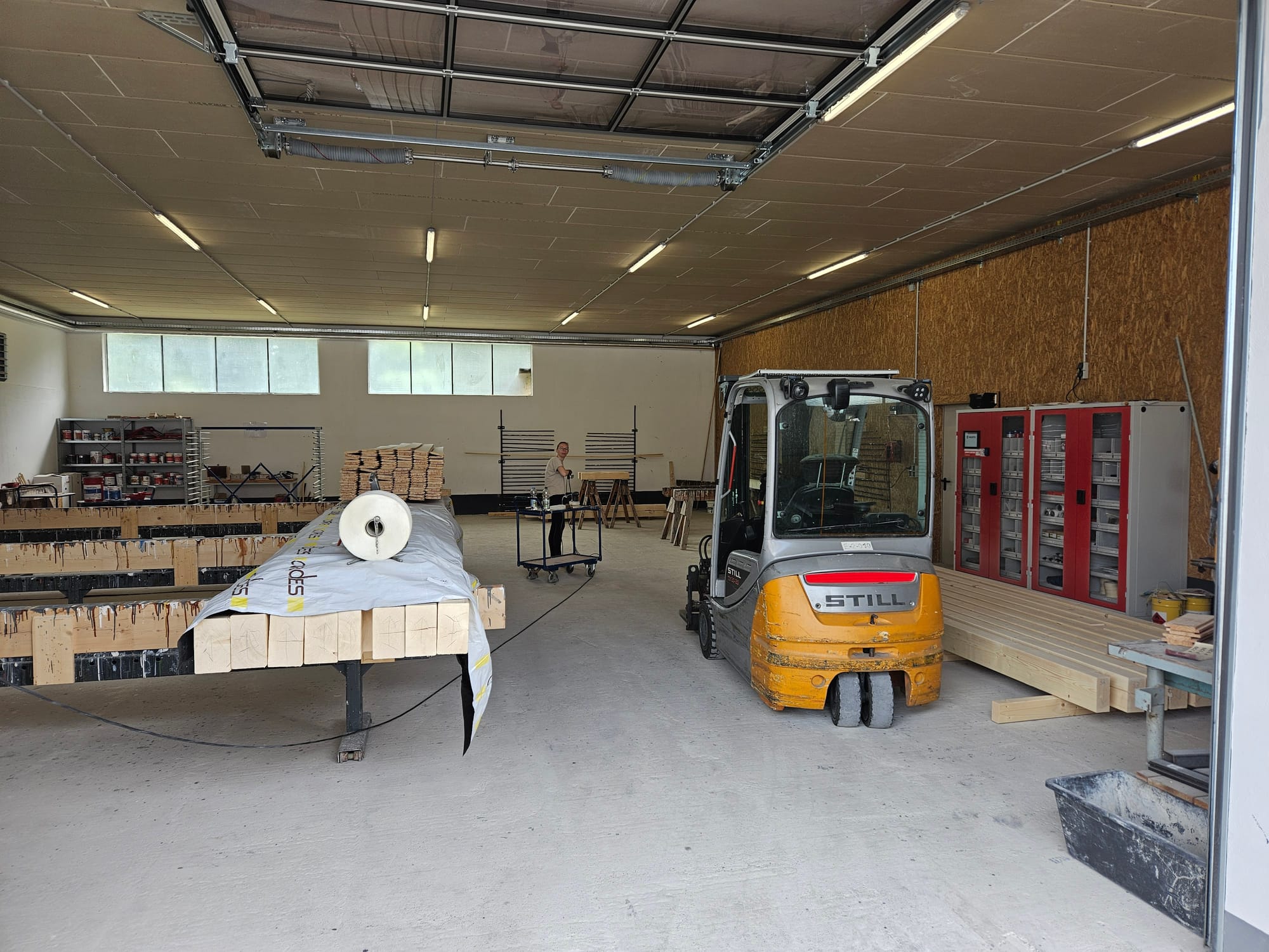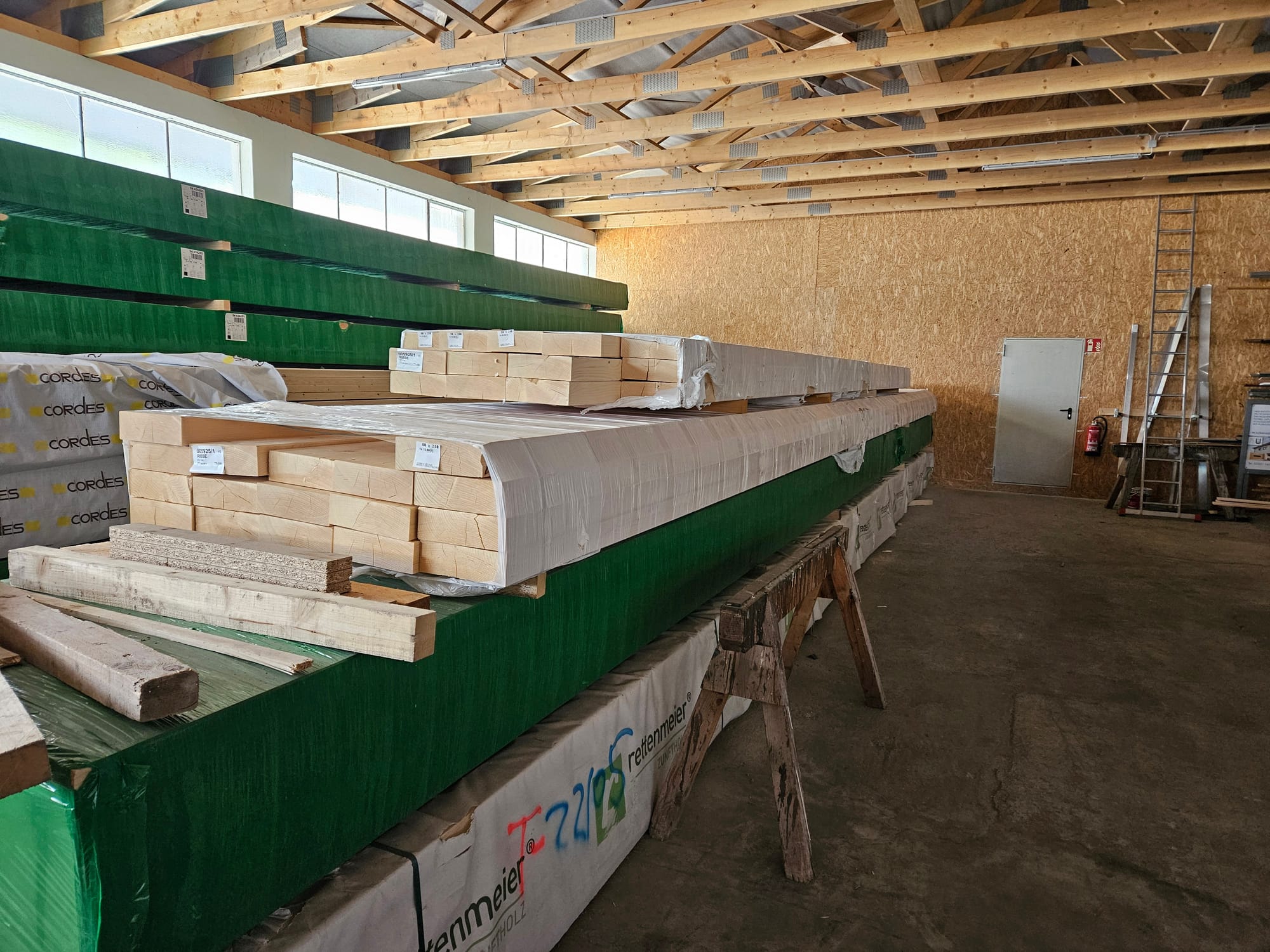 Es geht weiter. Was ist passiert? * Büro final Q2 gespachtelt * Gäste Decke zum 2. Mal lasiert * Keller grundiert * An der Holzfassade im Eingang wurde weiter gearbeitet Welche Firmen waren vor Ort? * Wir * Zimmerei Sonstiges * Sonstiges