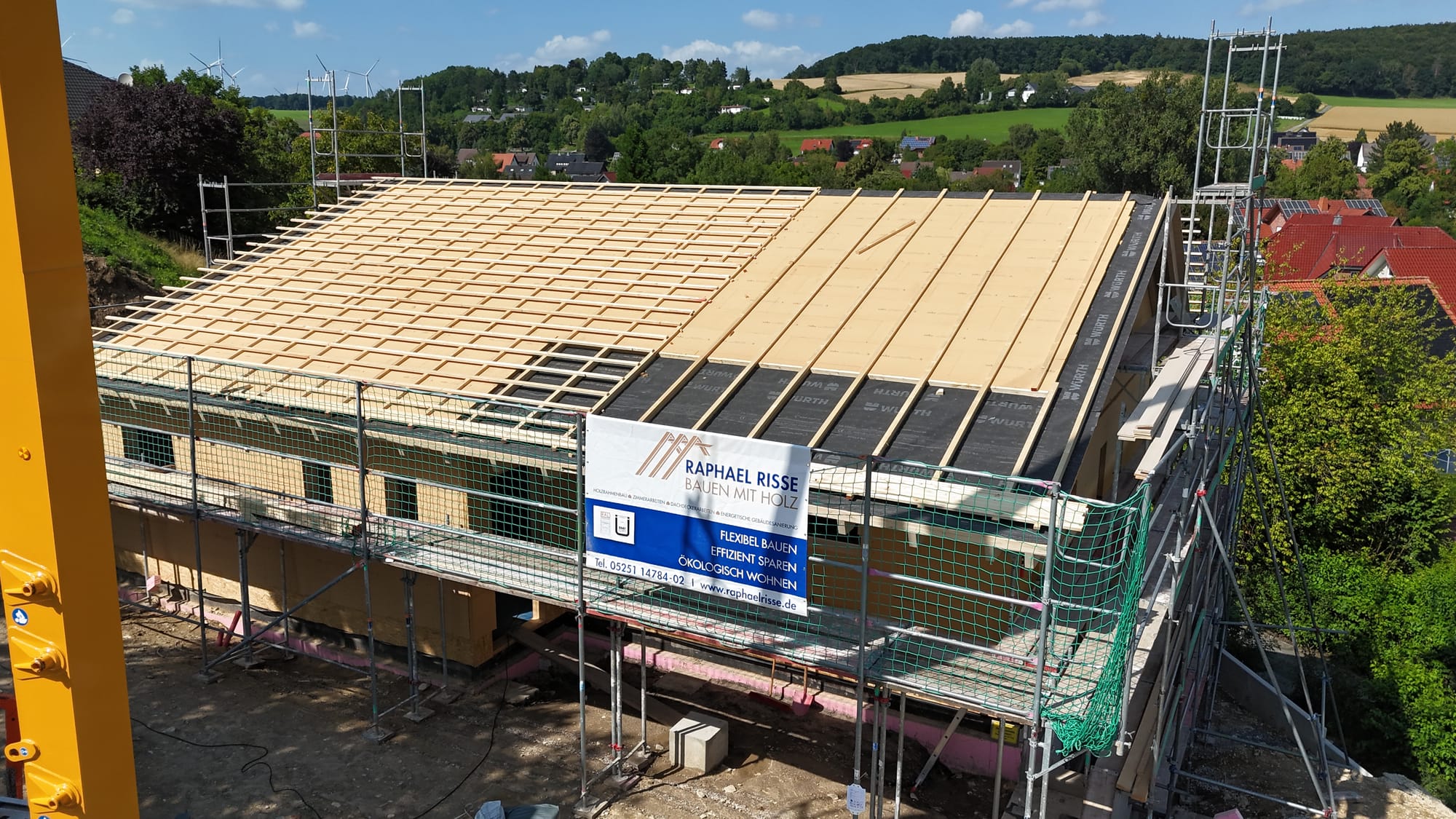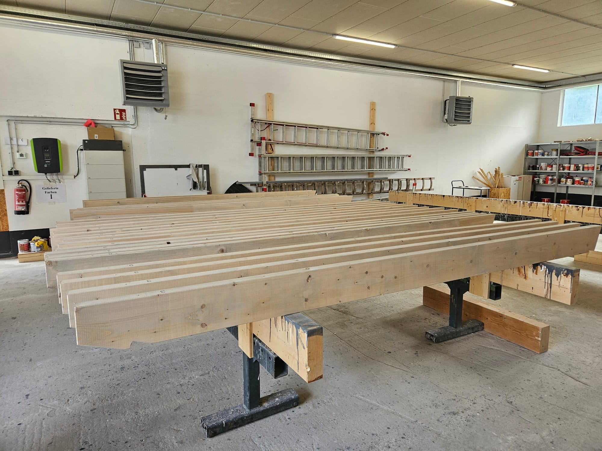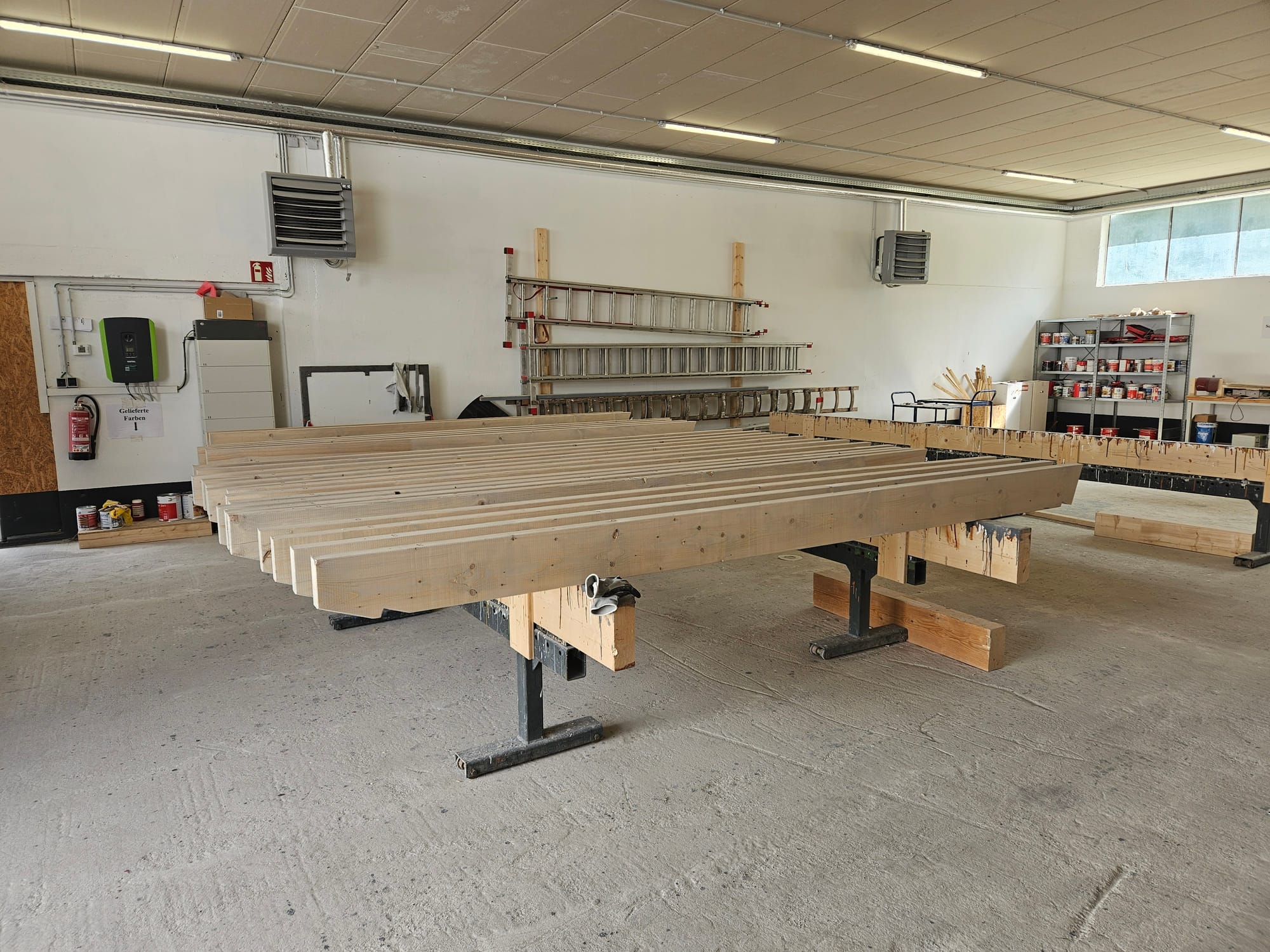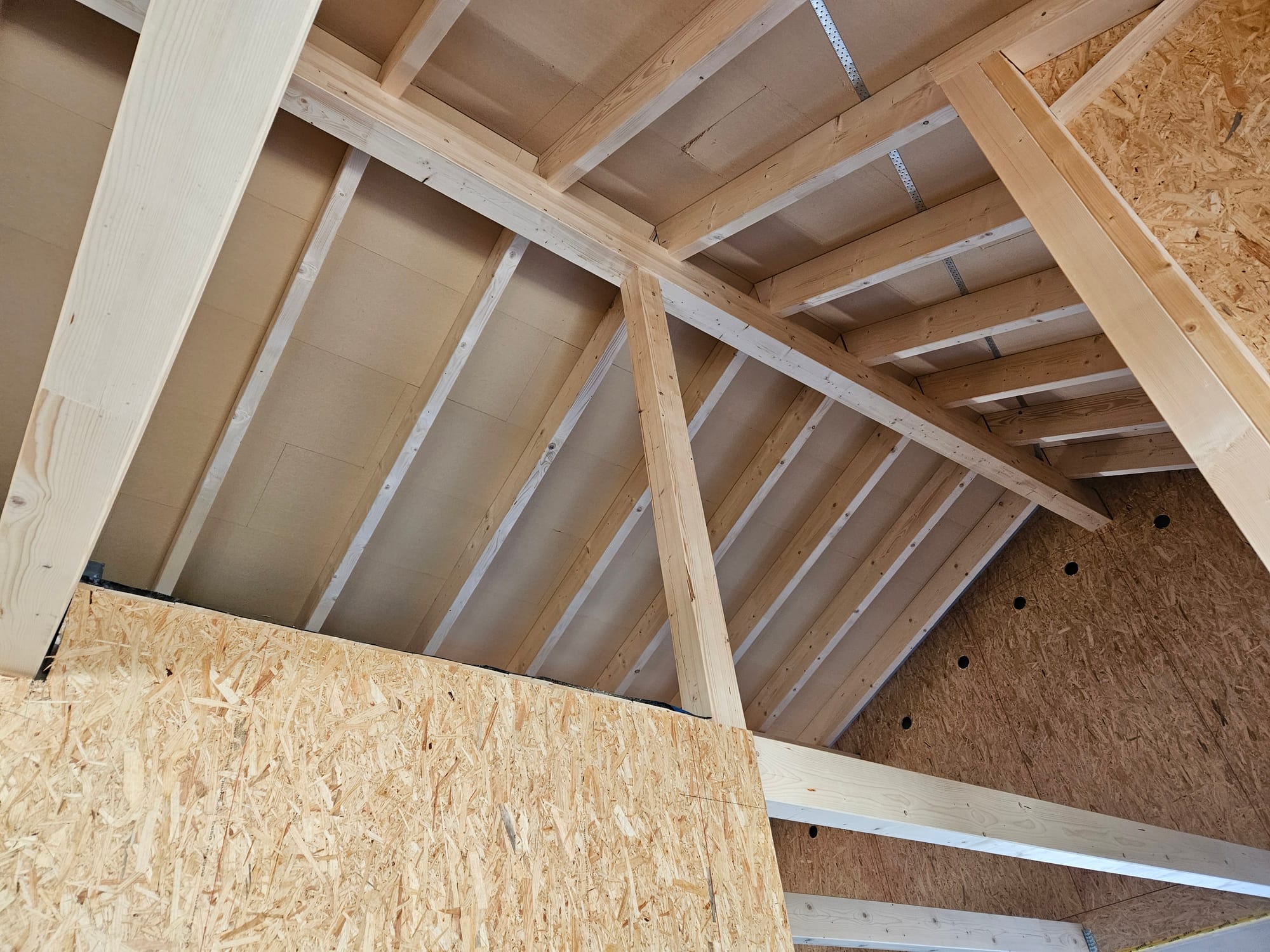 Wie streichen die Sparren des Carports und dichten alle Fenster mit Folie ab.