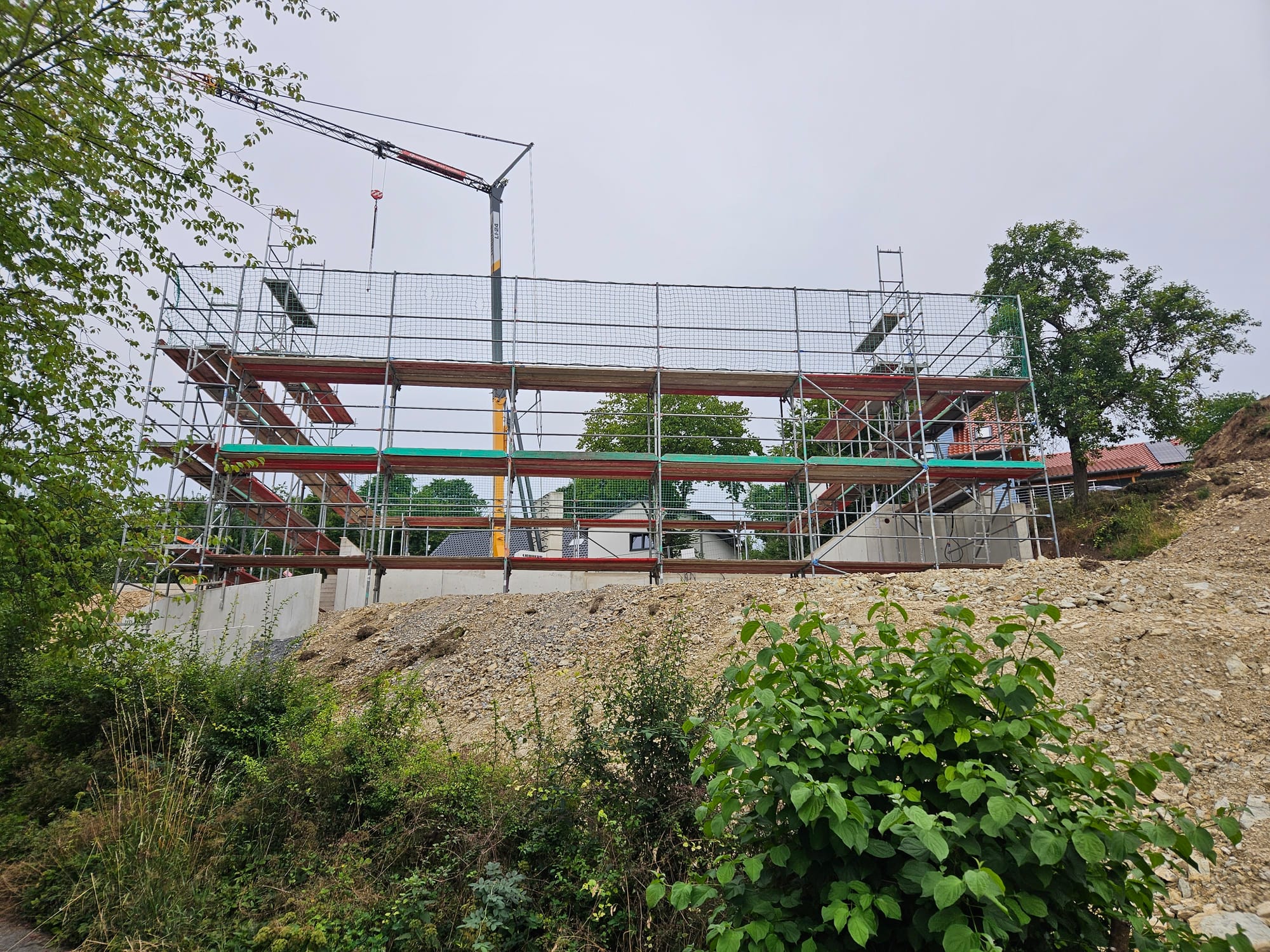 - Das Gerüst steht teilweise dem Carport im Weg. Der wird vermutlich dann erst später gestellt