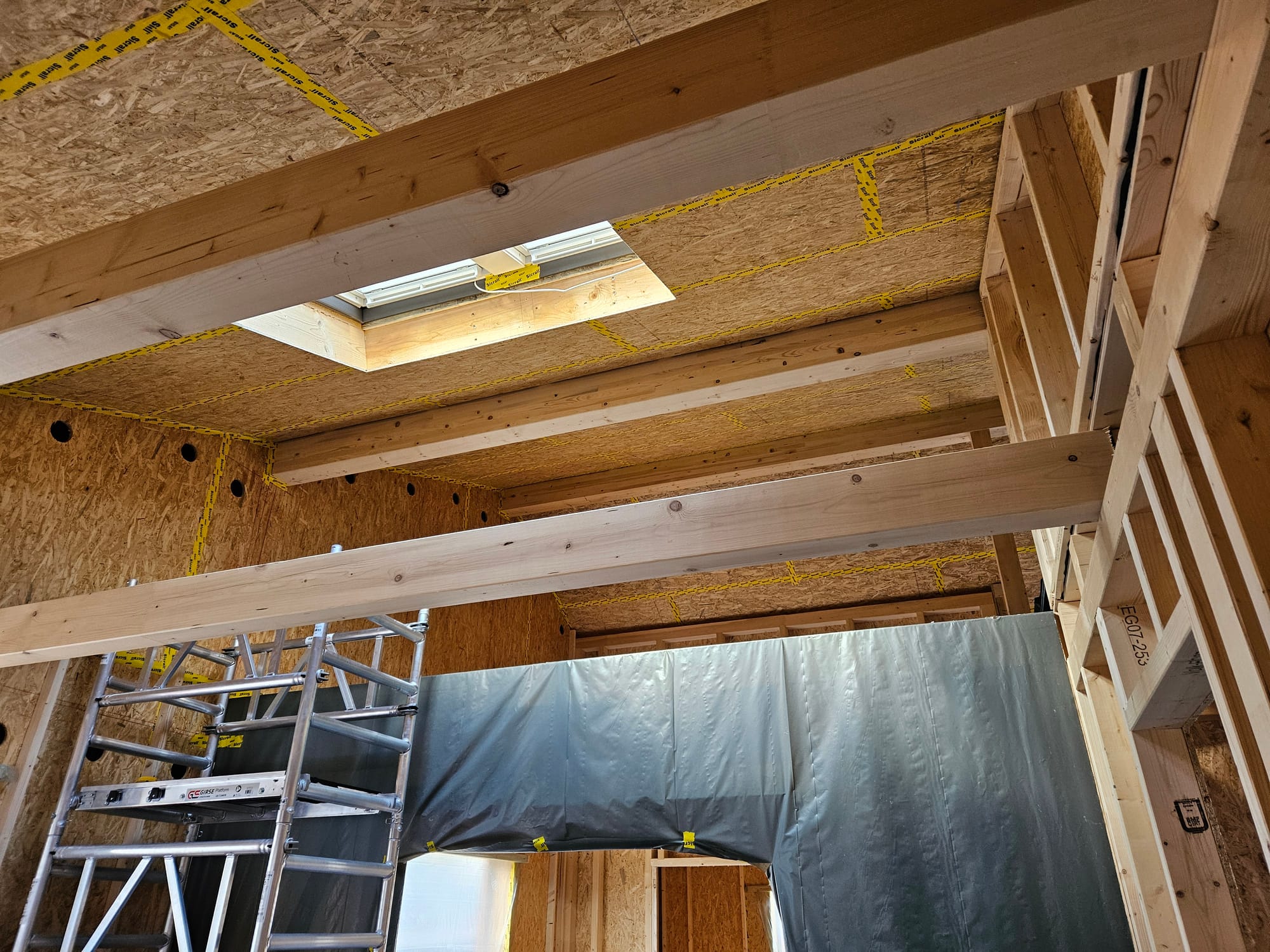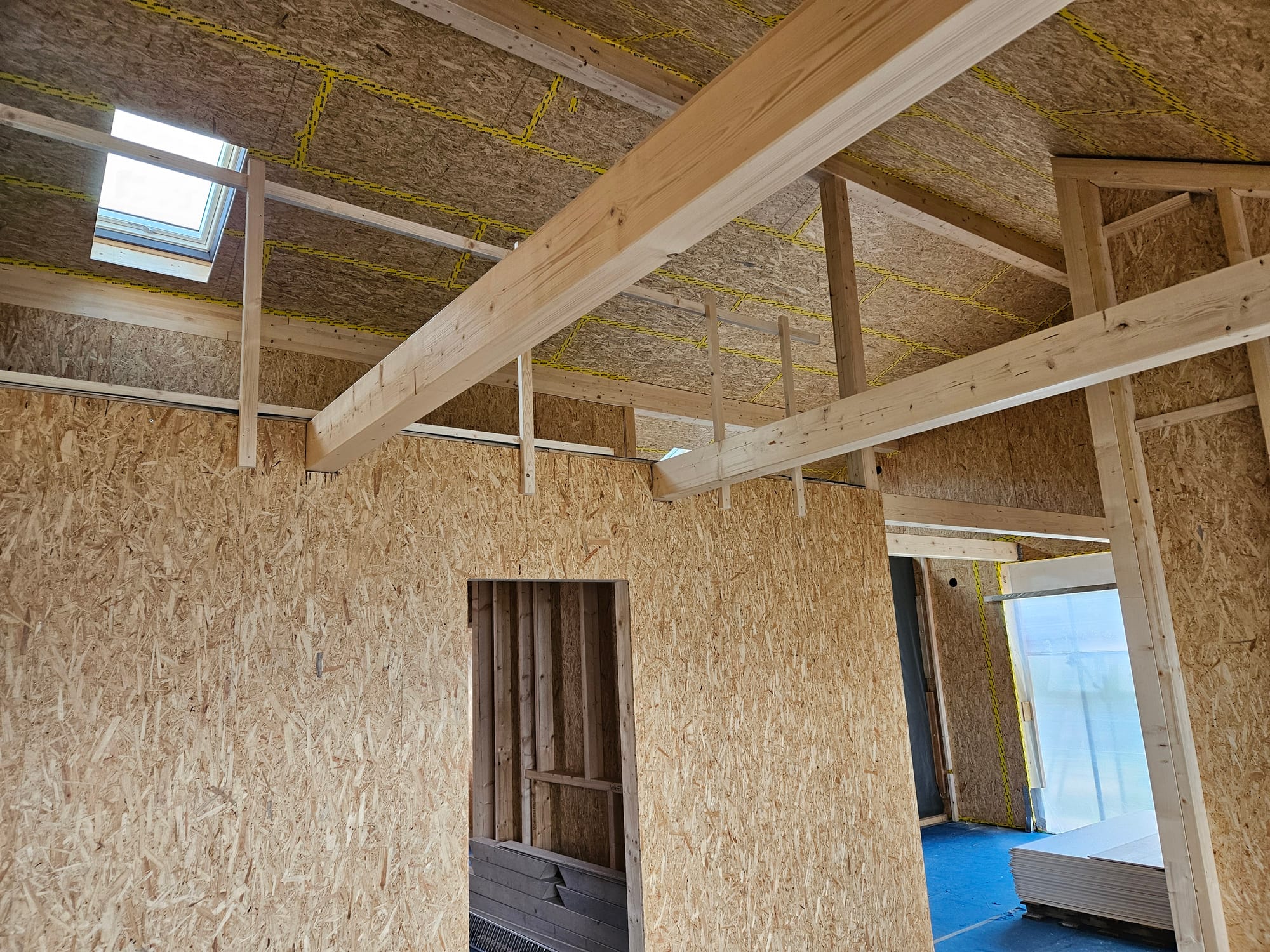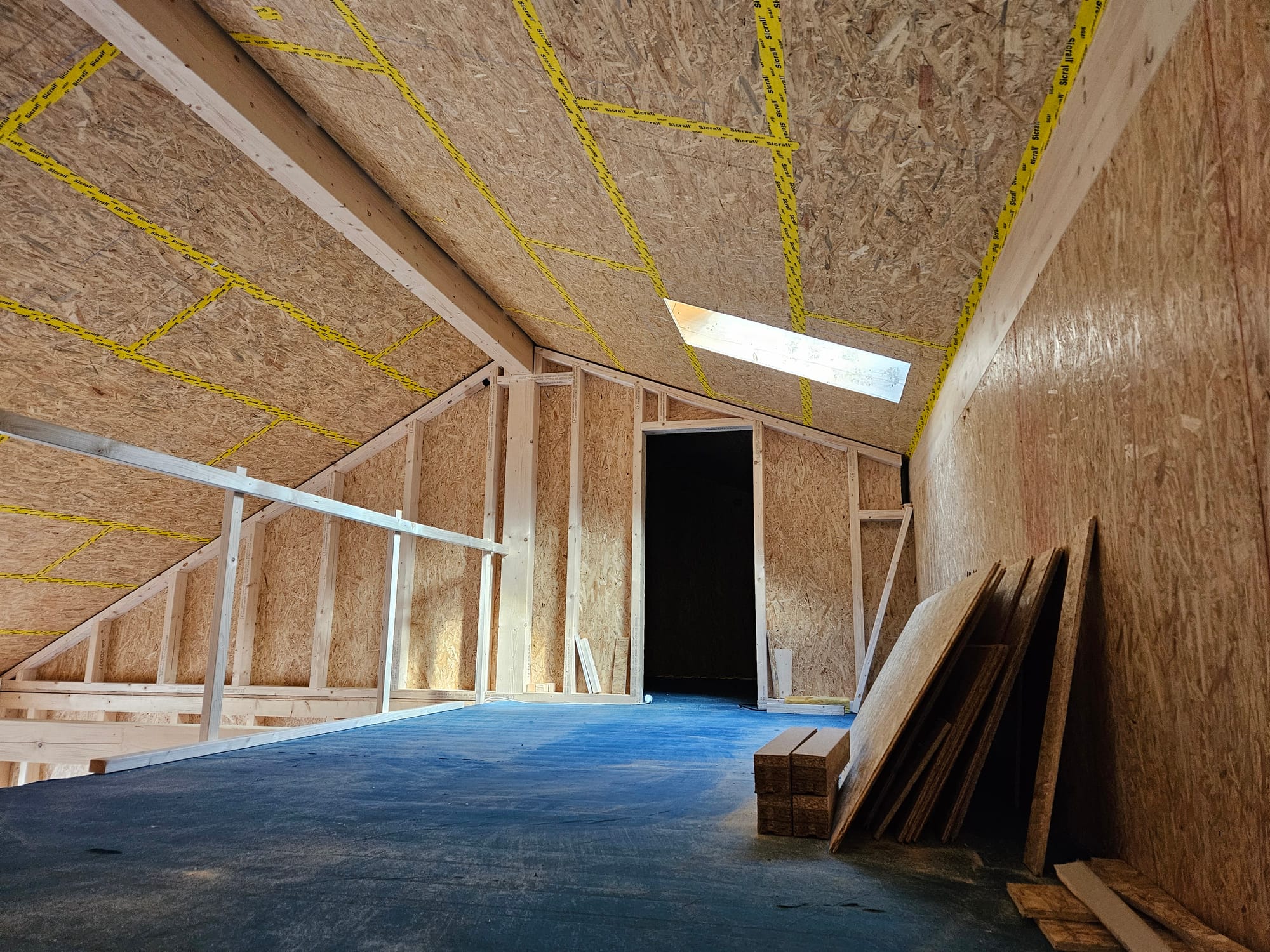 Wir packen die restlichen OSB Platten unter das südliche Dach.