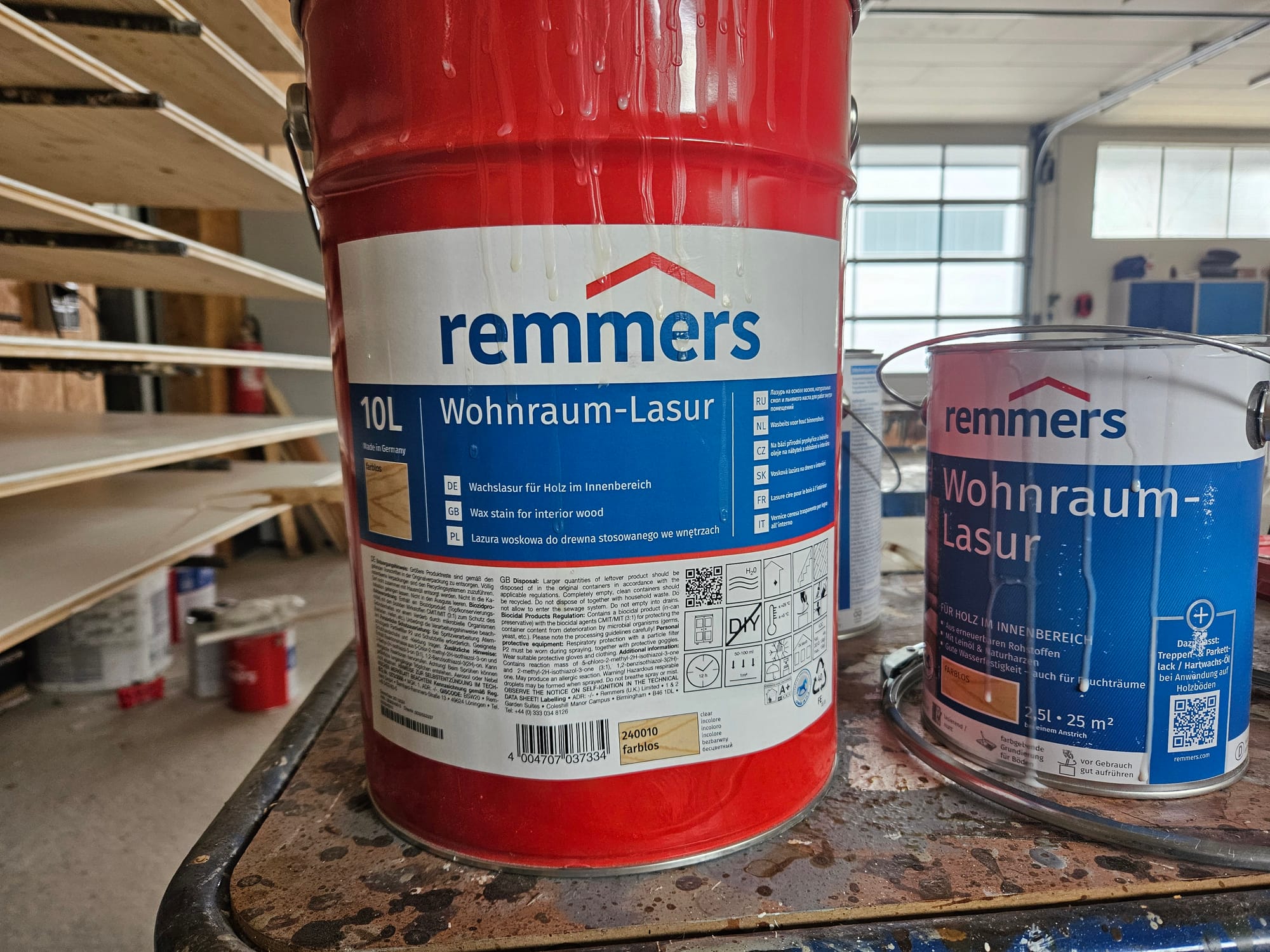 Der zweite Anstrich für die Deckenbalken und Bretter.