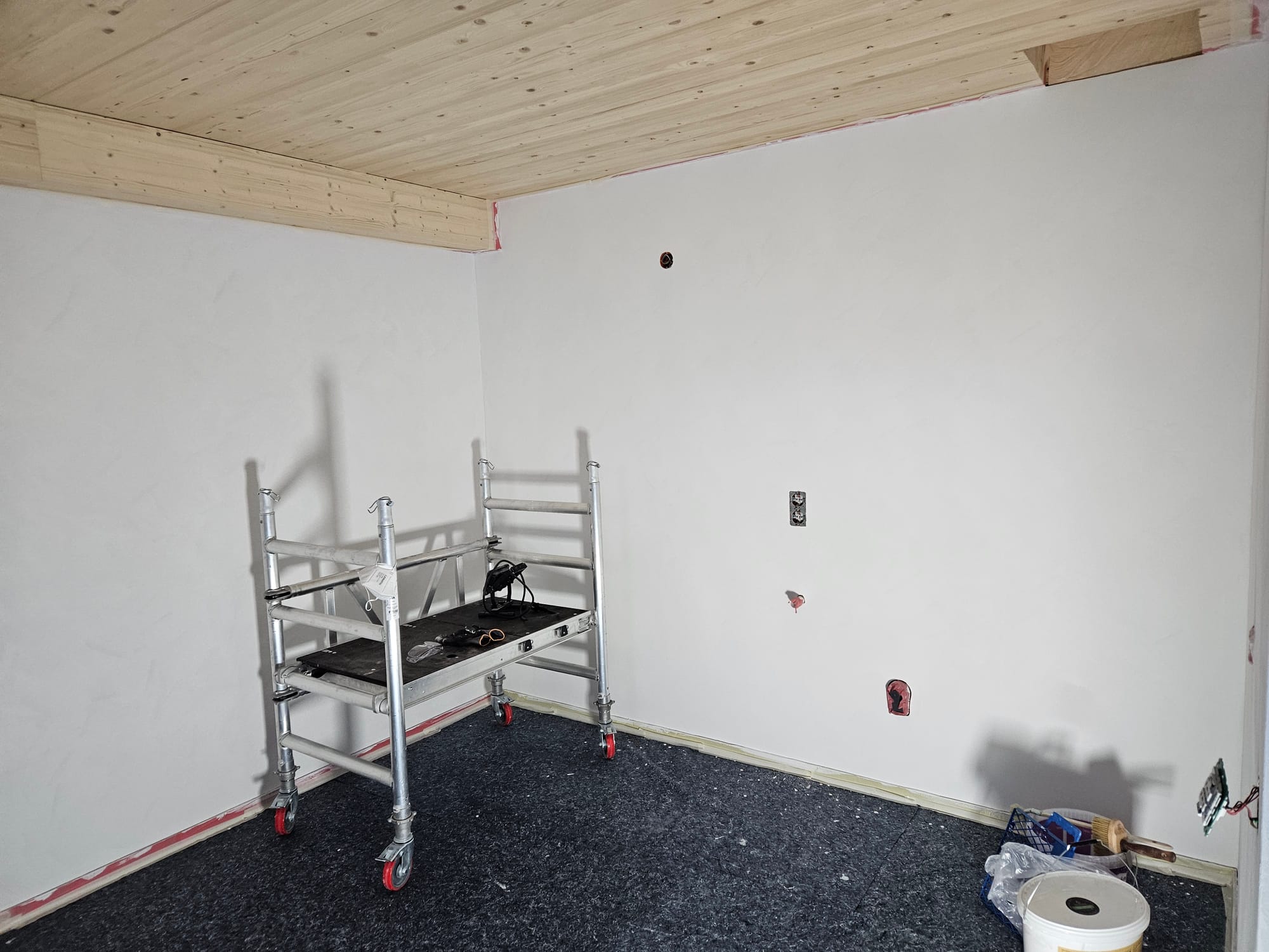 Der Großteil Elektro ist geschafft Was ist passiert? * Alle Kabel in den Dachboden gezogen * Kabel in den Heizkreisverteiler gezogen * Alle Beleuchtung gezogen Welche Firmen waren vor Ort? * Wir Sonstiges * 200m Leerohr gelegt * 200m Kabel gezogen